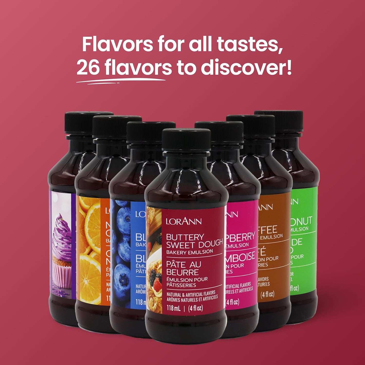 LorAnn Oils Buttery Sweet Dough Bakery Emulsion: Authentic Taste, Ideal for Amplifying Sweet Bready Notes in Baked Goods, Gluten-Free, Keto-Friendly, Essential for Your Kitchen, 4 Oz