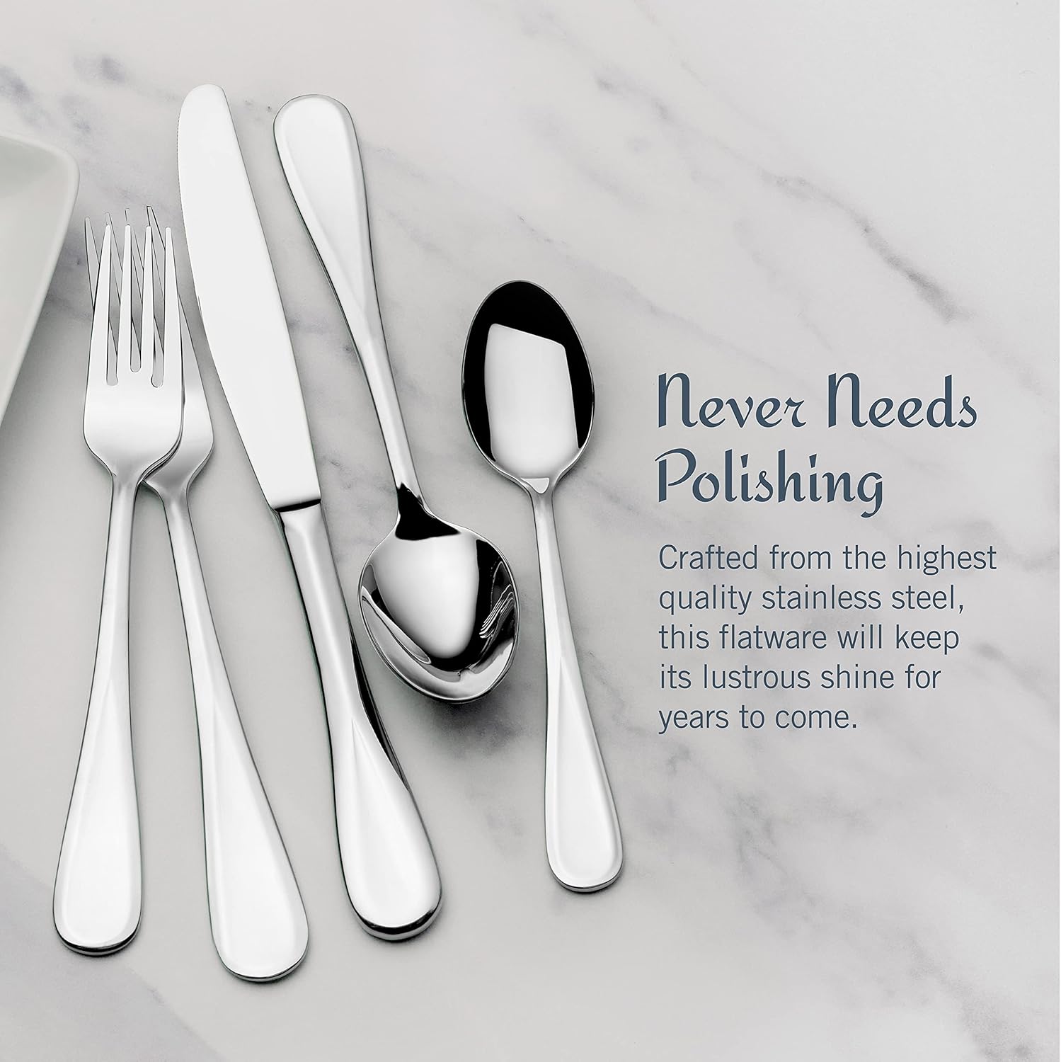 - NO POLISHING NEEDED: This flatware never needs to be polished, making care and maintenance easy.