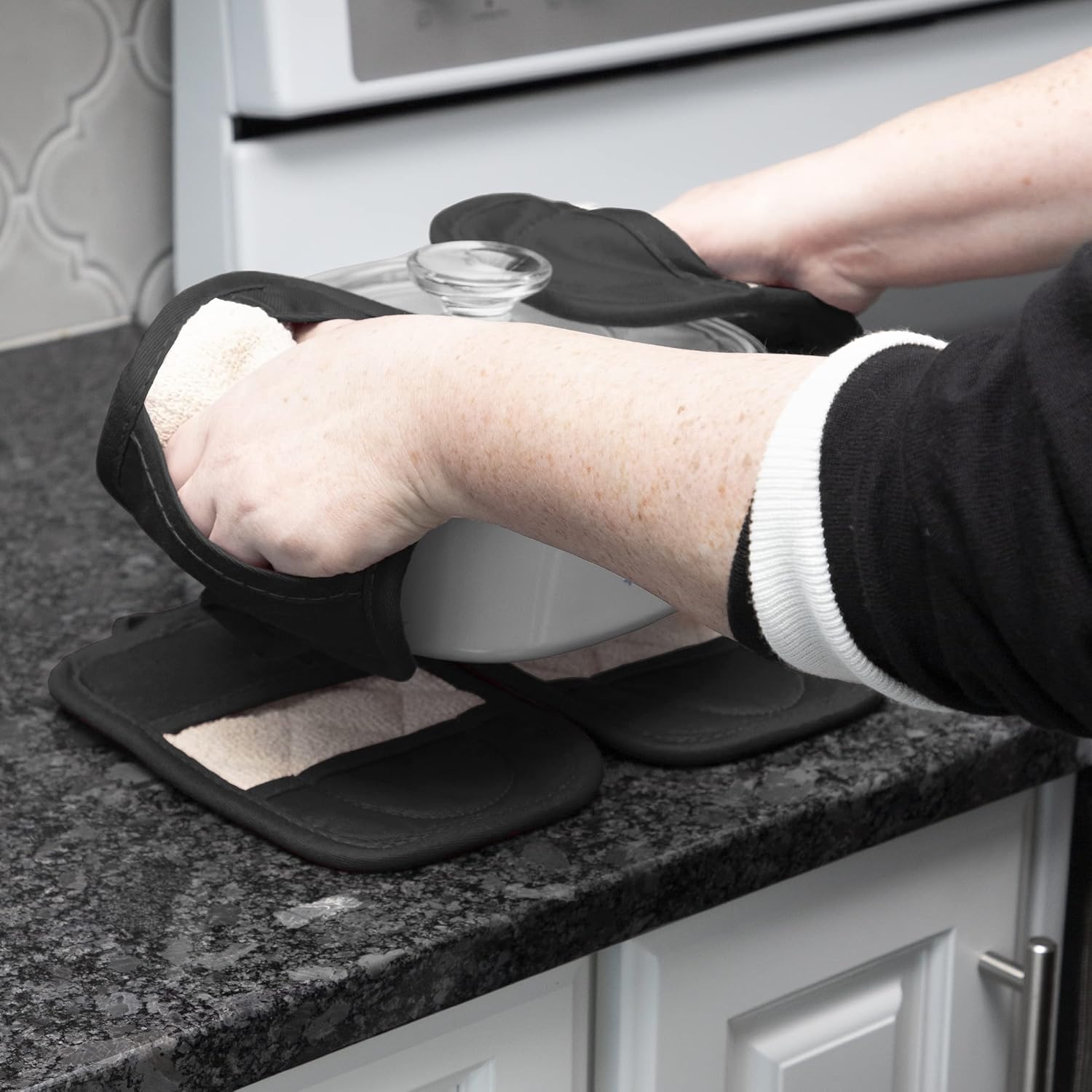 Ritz Premium Pot Holders & Heating Pads (4-Pack), 8.5" x 5.5", Heat Resistant, 100% Cotton Terry-Looped Pocket, for Kitchen and Barbeque, Black