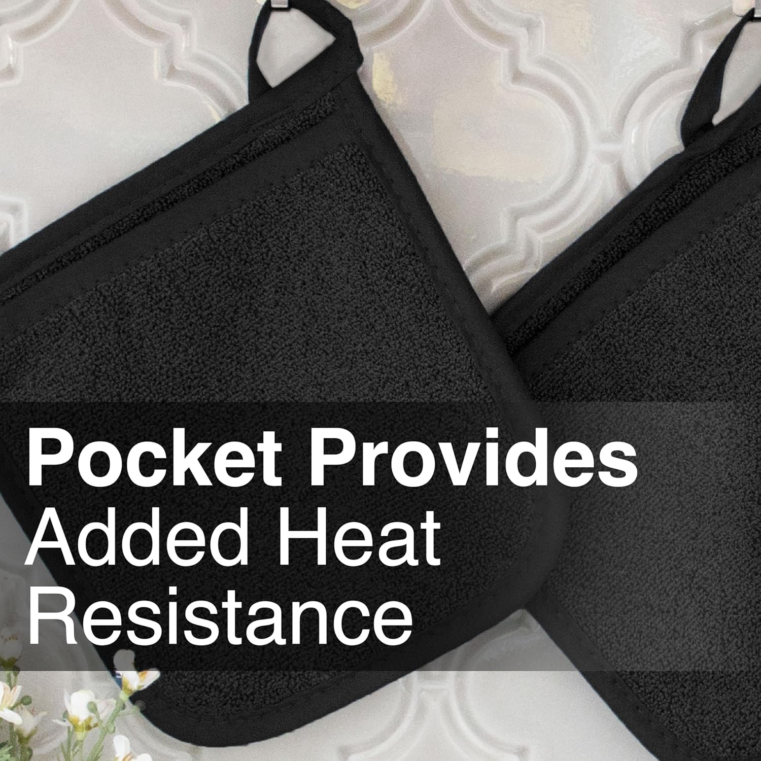 - CONVENIENT HANG LOOP. We know that a busy kitchen requires tools that are always within reach. That's why each pocket mitt comes complete with a handy hanging loop. Hang them by your oven or kitchen island, and you'll always have your trusty mitts right where you need them.