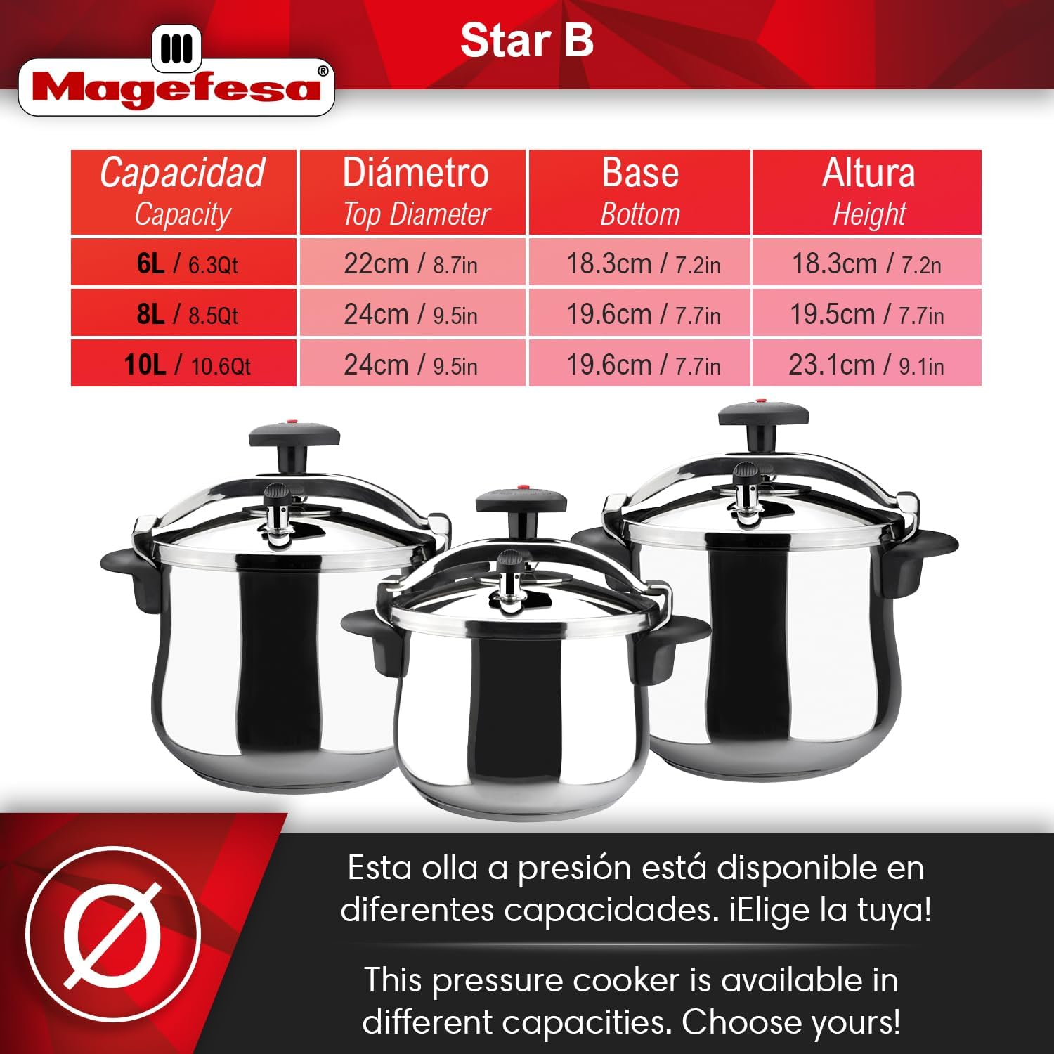 - SUITABLE FOR ALL KINDS OF STOVETOPS: MAGEFESA STAR pressure cookers have a "Full induction" bottom. Save on your electricity bill thanks to “Full induction” since they need up to 75% less energy to produce the heat you need to cook.