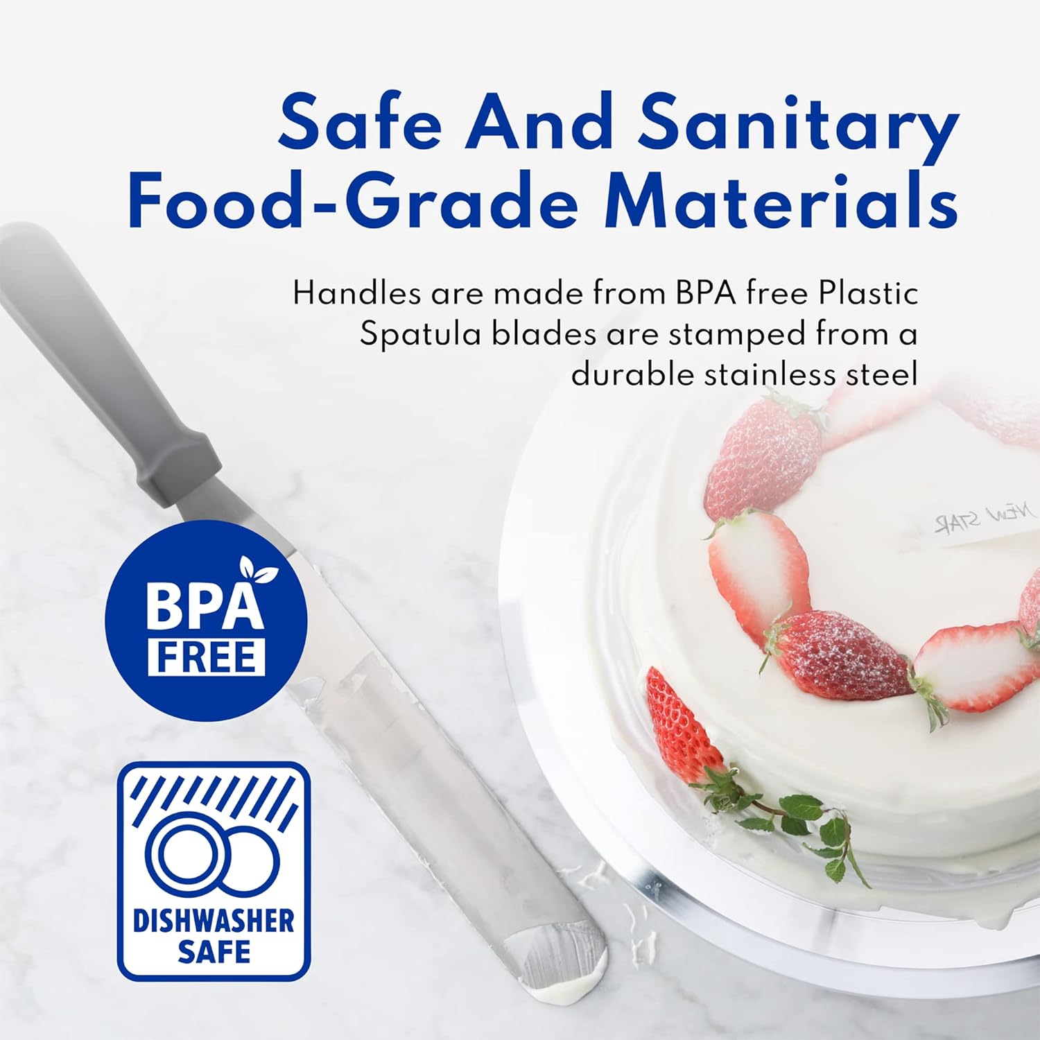 - Flexible stainless steel blade is the perfect thickness for gliding over icing and its angled design allows you to round corners easily