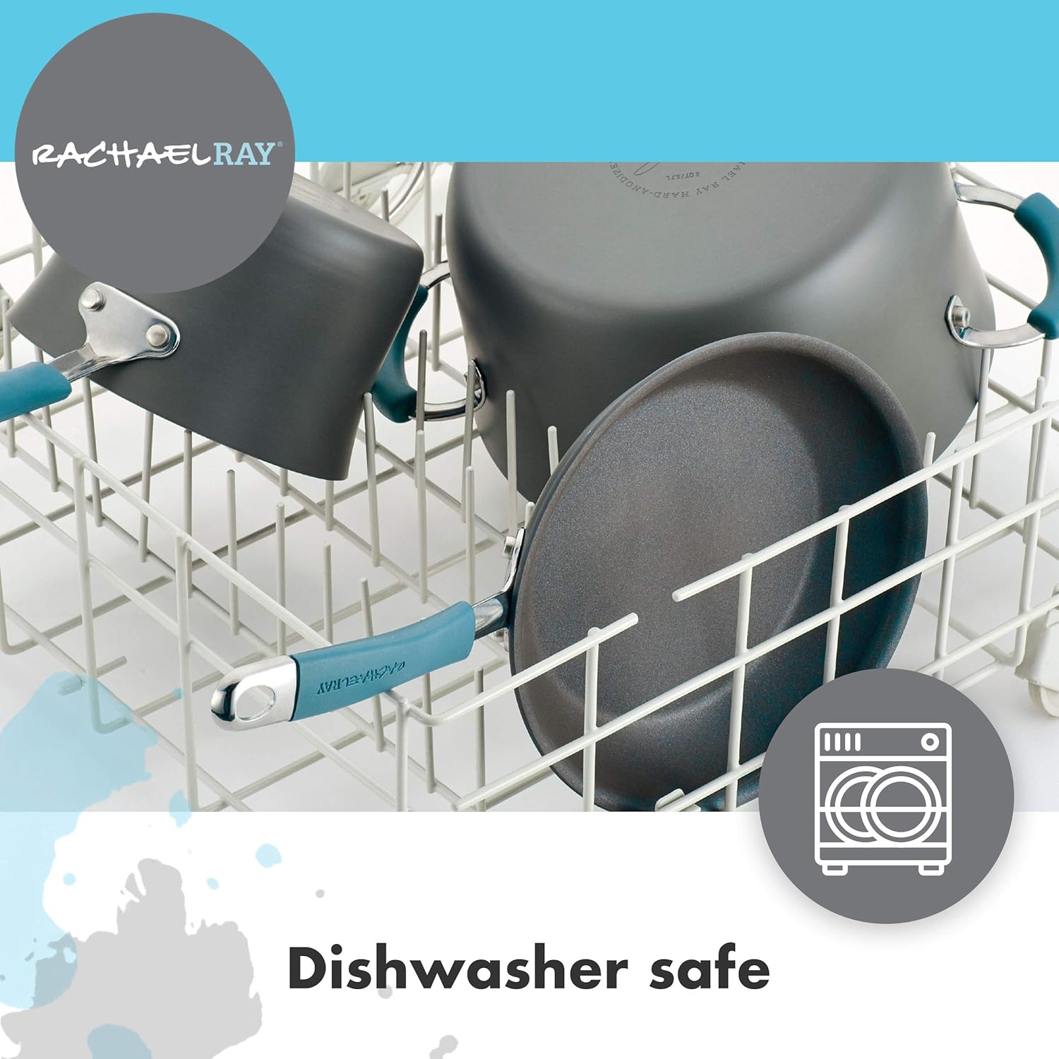 - PRODUCT DETAILS: Rachael Ray Cucina Hard Anodized Nonstick Skillet with Helper Handle, Anodized Aluminum Nonstick Fry Pan, 14-Inch, Gray/Agave Blue.