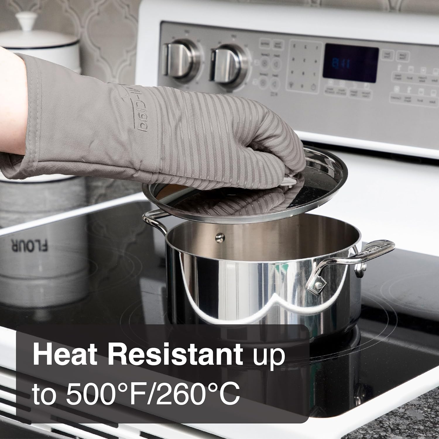 All-Clad Premium Silicone Oven Mitt: Heat Resistant to 500 Degrees - 100% Cotton & Silicone, 14"x7" Pot Holder for Kitchen and Barbeque, (1-Pack), Titanium Gray