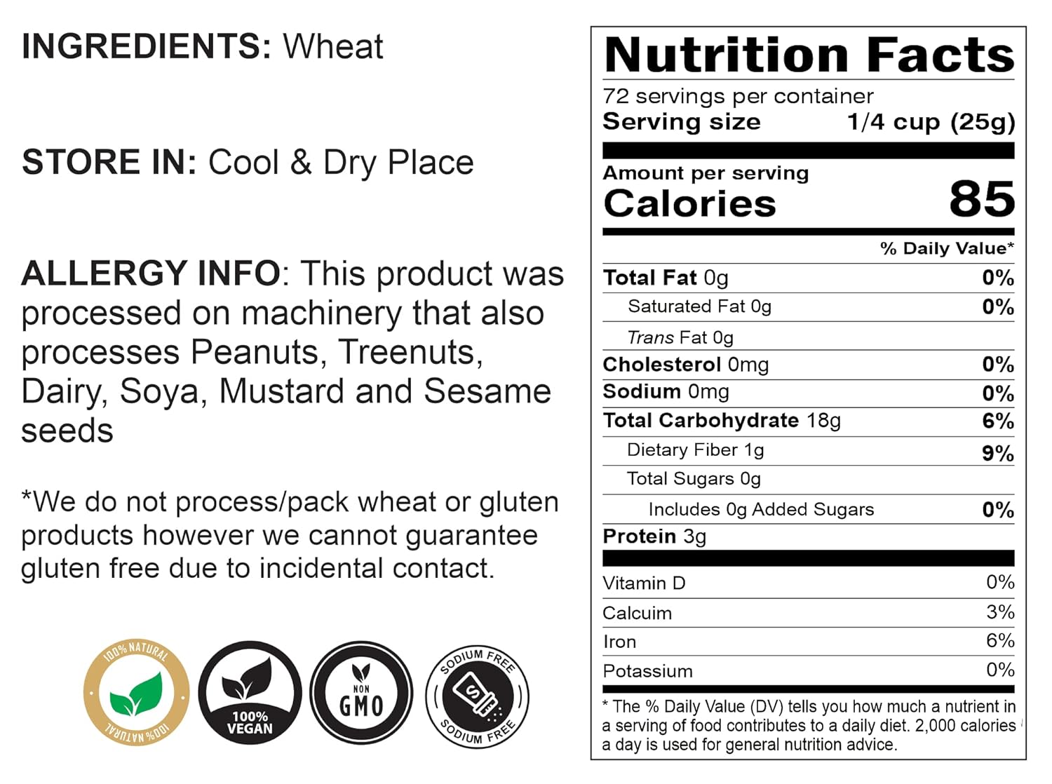 Rani Sooji Coarse (Farina, Suji, Rava, Rawa, Wheat Semolina) Flour 64oz (4lbs) 1.81kg Bulk ~ All Natural | Vegan | NON-GMO | Indian Origin