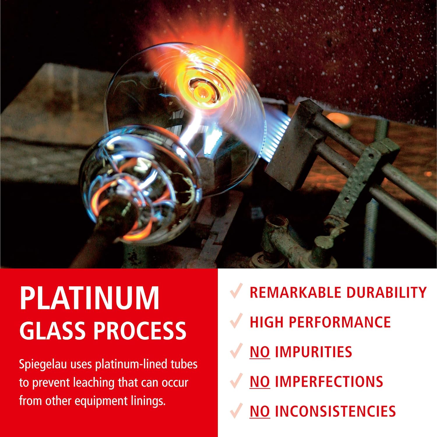 - DISHWASHER SAFE – Spiegelau’s Platinum Glass process ensures brilliance and crystal clarity. Even when run through 1,500 dishwasher cycles during testing processes, these wine glasses remained flawless, without scratching, fogging, or loss of brilliance.