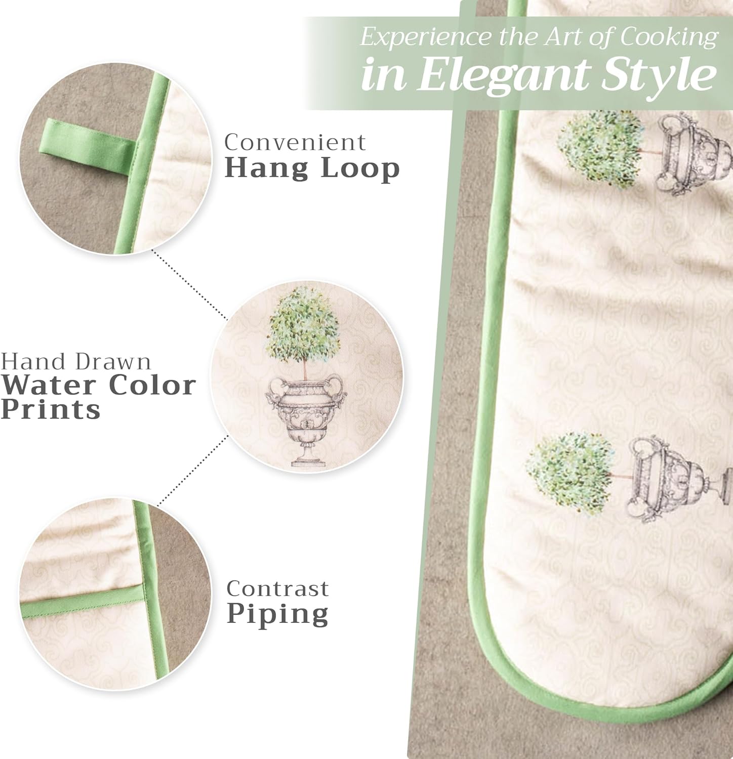 Maison d' Hermine Double Oven Mitts 100% Cotton 7"x35" Double Oven Mitt Heat Resistant BBQ Cooking Gloves with Loop, Baking, Grilling, Home, Kitchen, Handling Hot Pans Spring Summer (Jardin Du Roy)