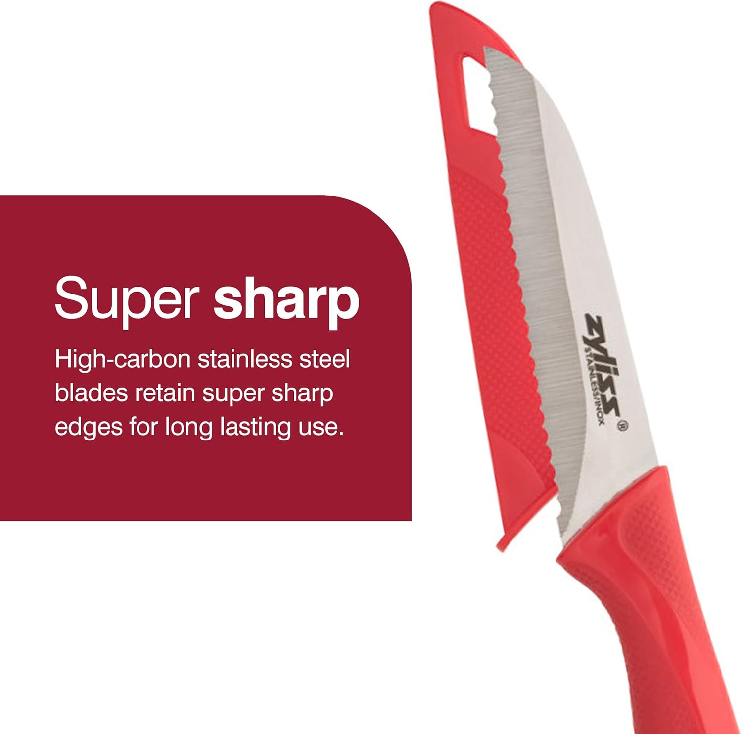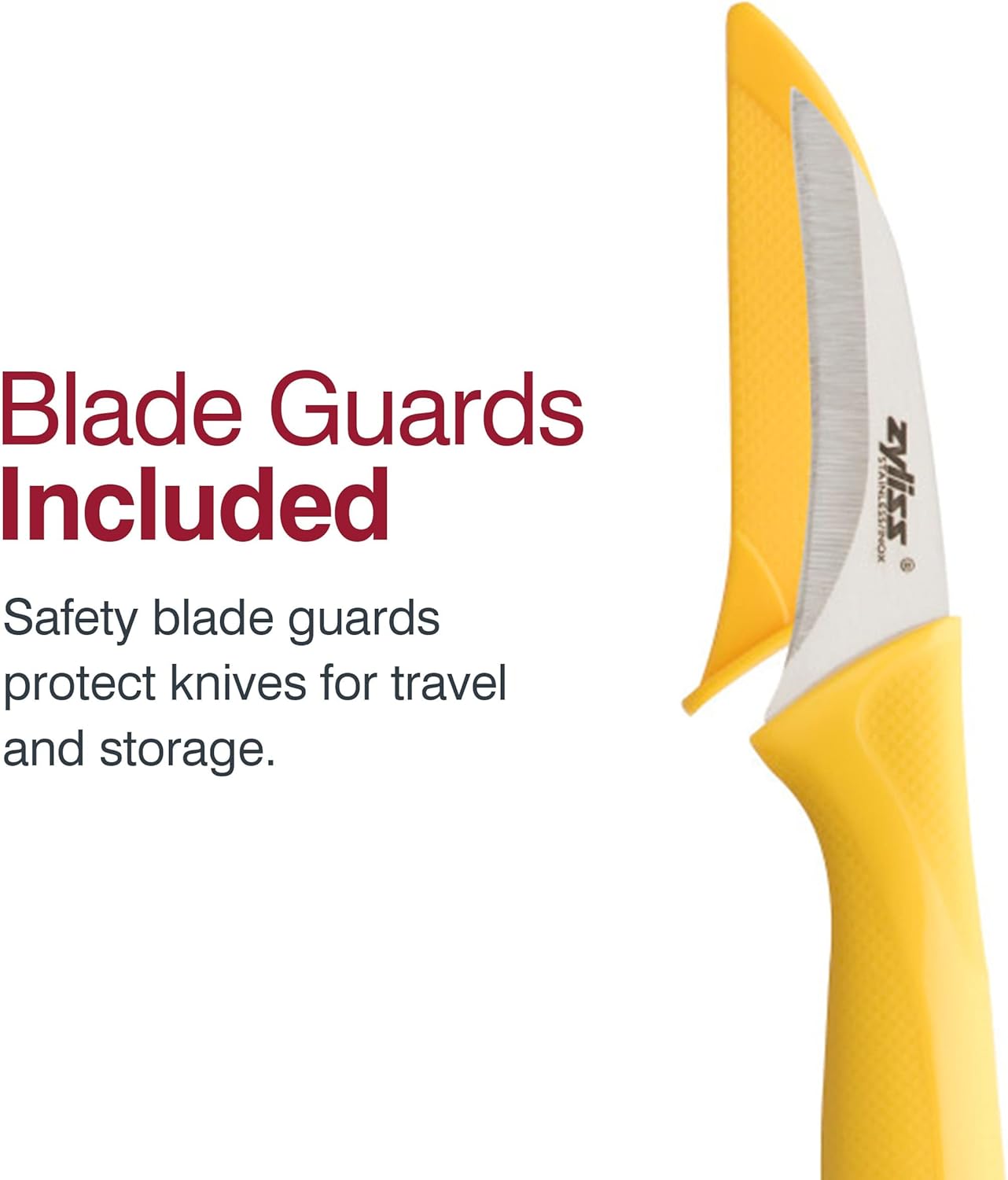 Zyliss 6 Piece Knife Value Set - Kitchen Knife Set with Sheath Covers - Chef's, Santoku, Utility, Serrated Paring, Paring & Peeling Knives - Stainless Steel