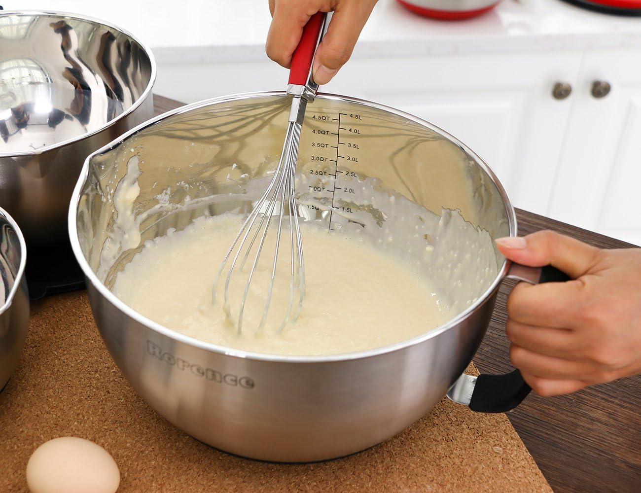 - THREE DIFFERENT SIZES: 1.5 QT, 3 QT, 5 QT. Perfect for preparing vinaigrette, muffin pancake batters and bread dough, whisking eggs, cake mixtures, and much more. Perfect gift for birthday, housewarming, Christmas, Thanksgiving and so on