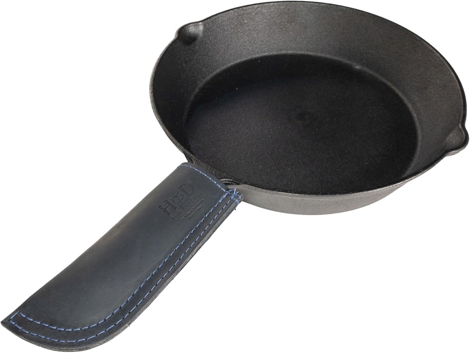 Hide & Drink, Full Grain Leather Hot Handle, Cast Iron Protector, Panhandle Potholder, Double Layered, Double Stitched, Slides On/Off Easily onto Metal Skillet Grips, Handmade, Slate Blue