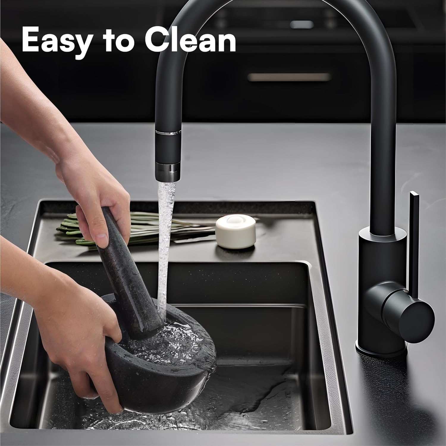 - Efficient & Effortless Grinding: Time to forget heavy blenders and mixers, or food processors; this large black mortar and pestle lets you crush and mash rock solid ingredients with ease. It is ideal to use for mashing seeds, ginger root, and more.