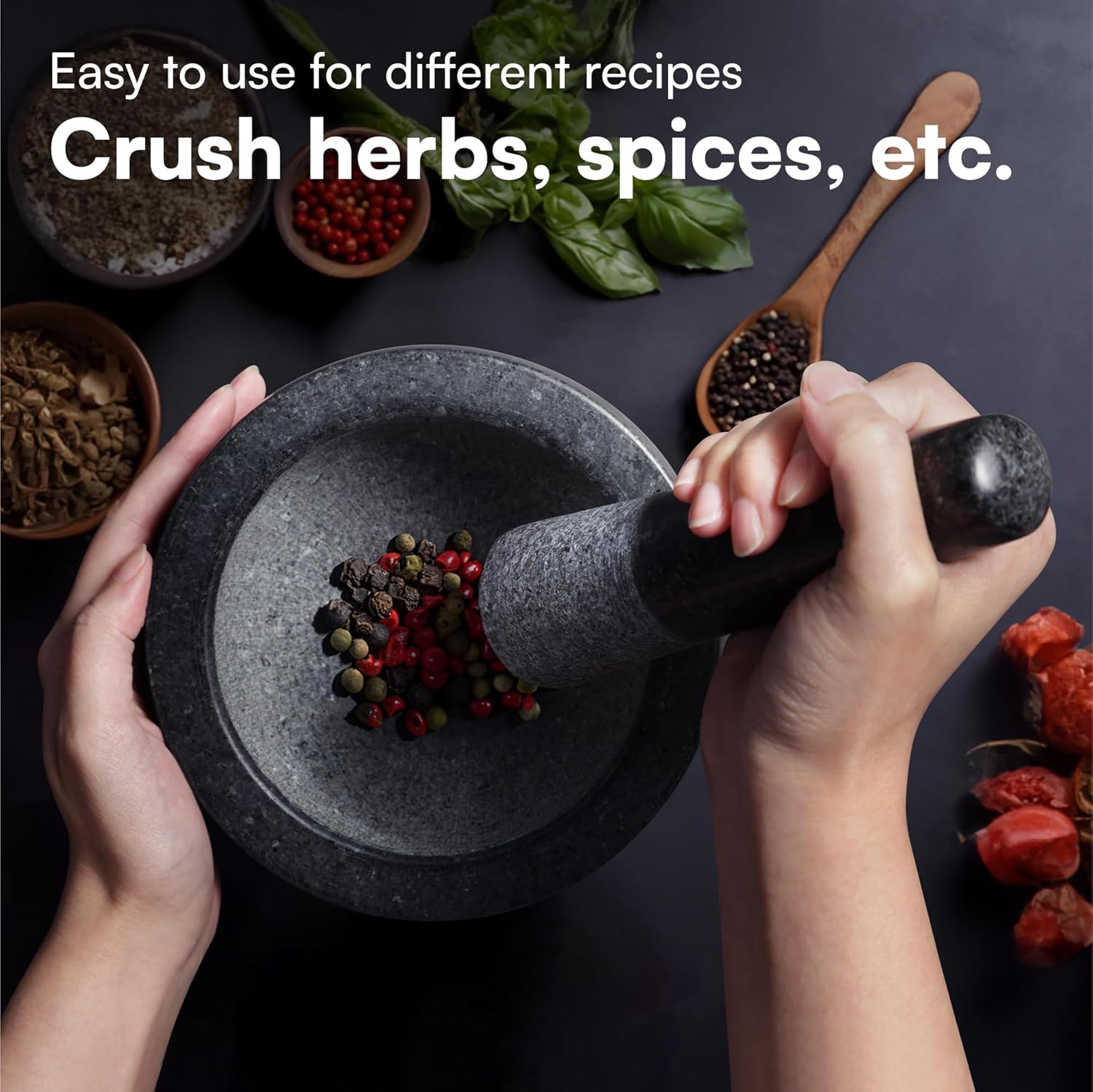 - A Thoughtful Gift Idea: Our large pestle and mortar set makes a perfect gift for your friends and family who loves to crush and mash ingredients for guacamole, salsa, curry paste, and pesto at their homes with a few efficient thumps quickly and easily.