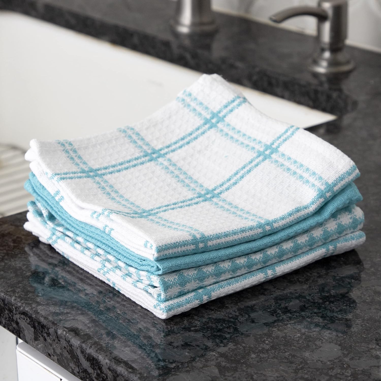 T-FAL Premium Waffle Dish Cloths: Highly Absorbent, Super Soft Long Lasting - 100% Cotton, 12"x13" Flat Waffle Dish Towel for Cleaning & Drying Dishes, (4-Pack), Breeze