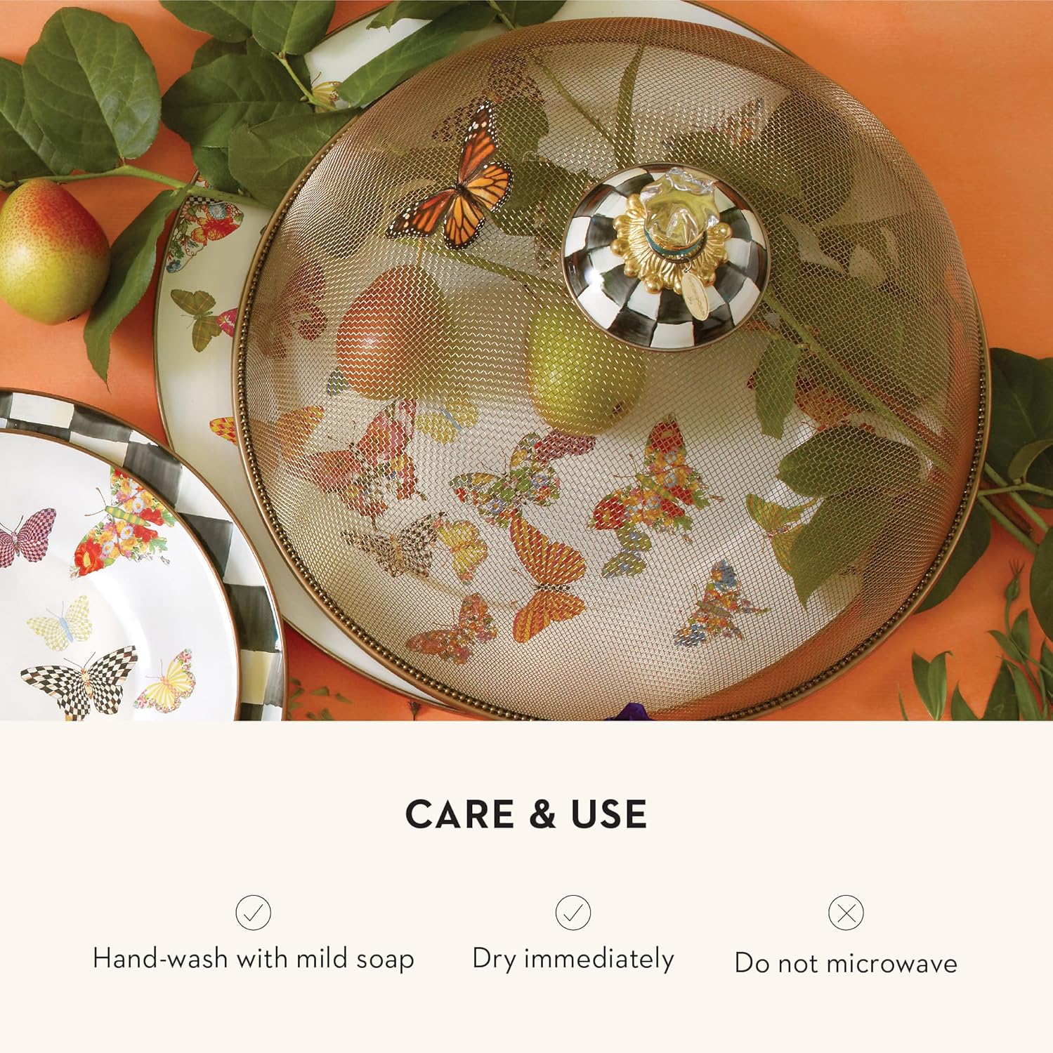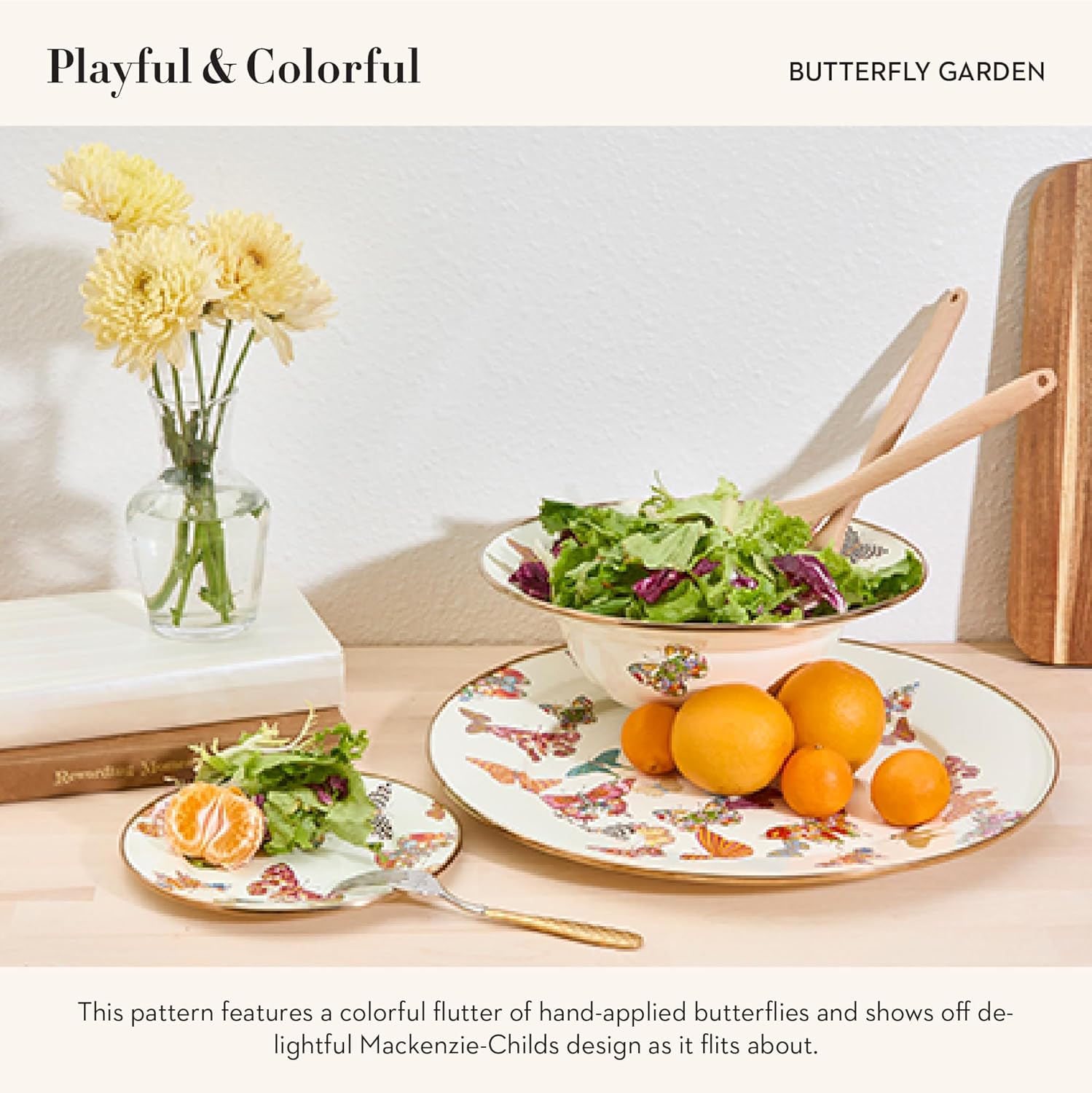 MACKENZIE-CHILDS Enamel Serving Platter, Decorative Serving Platter for Food, 16 Inches, Butterfly Garden