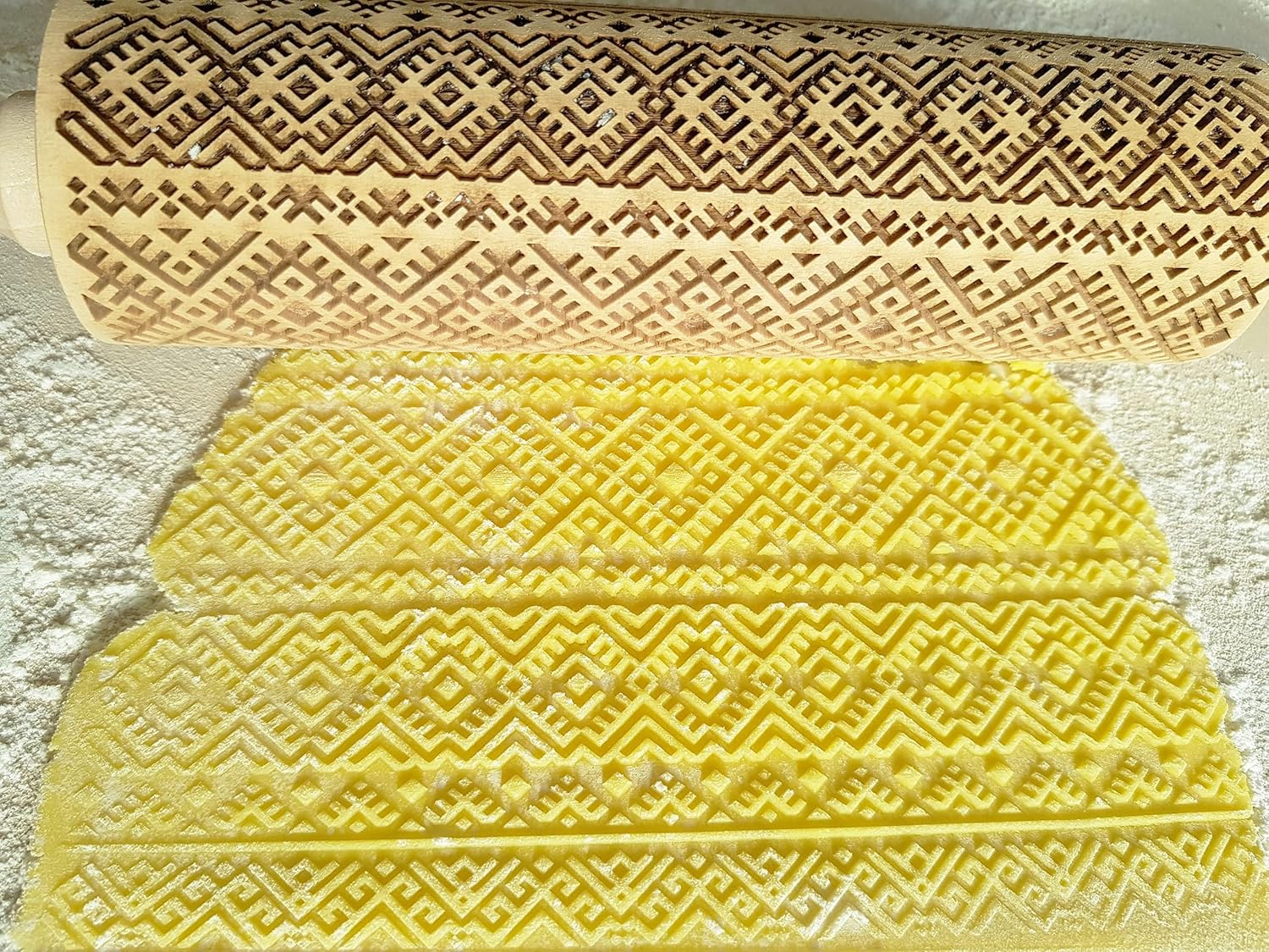 ETHNO RIBBON embossed rolling pin. Engraved dough roller with ethnical pattern for embossed cookies