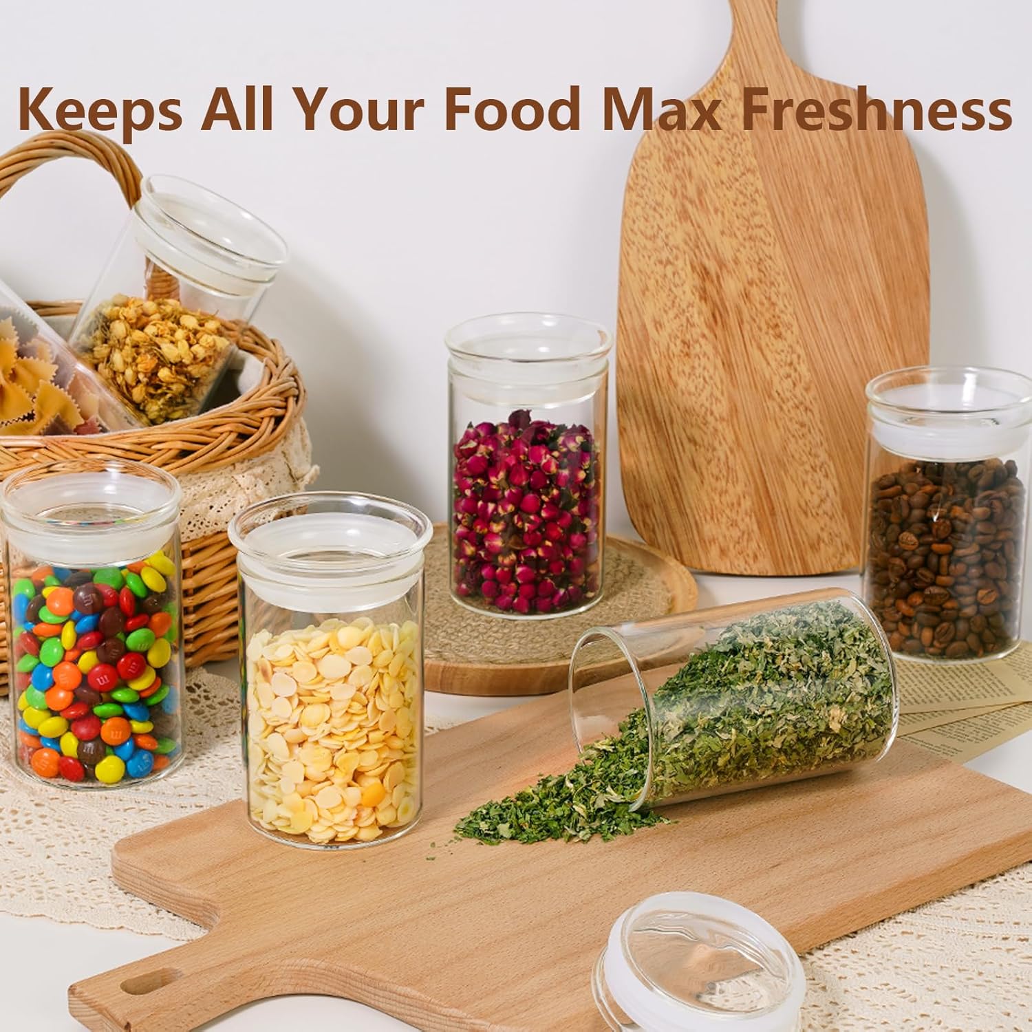 - CHOOSE YOUR SIZE&CAPACITY: ZENS glass kitchen canisters are having 7 sizes in deferent diameter, great for you to mix and matching nicer looking of your kitchen counter. The small jars are great for spices or snacks. while the wide mouth jars are perfect for all dry foods like cereal, pasta and flour. Isn’t it time to building your full pantry with a new makeover?