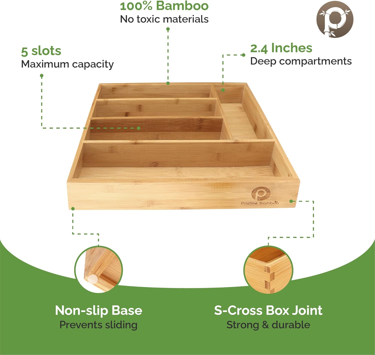 - SUPERIOR DESIGN SOLUTIONS: The only bamboo drawer organizer that offers all-in-one features: 100% bamboo (even the base), No Toxic MDF, Slip-resistant, Extra Depth, Strong & Durable Construction. This is undoubtedly the best drawer organizer available and our reviews are the testament of the quality.