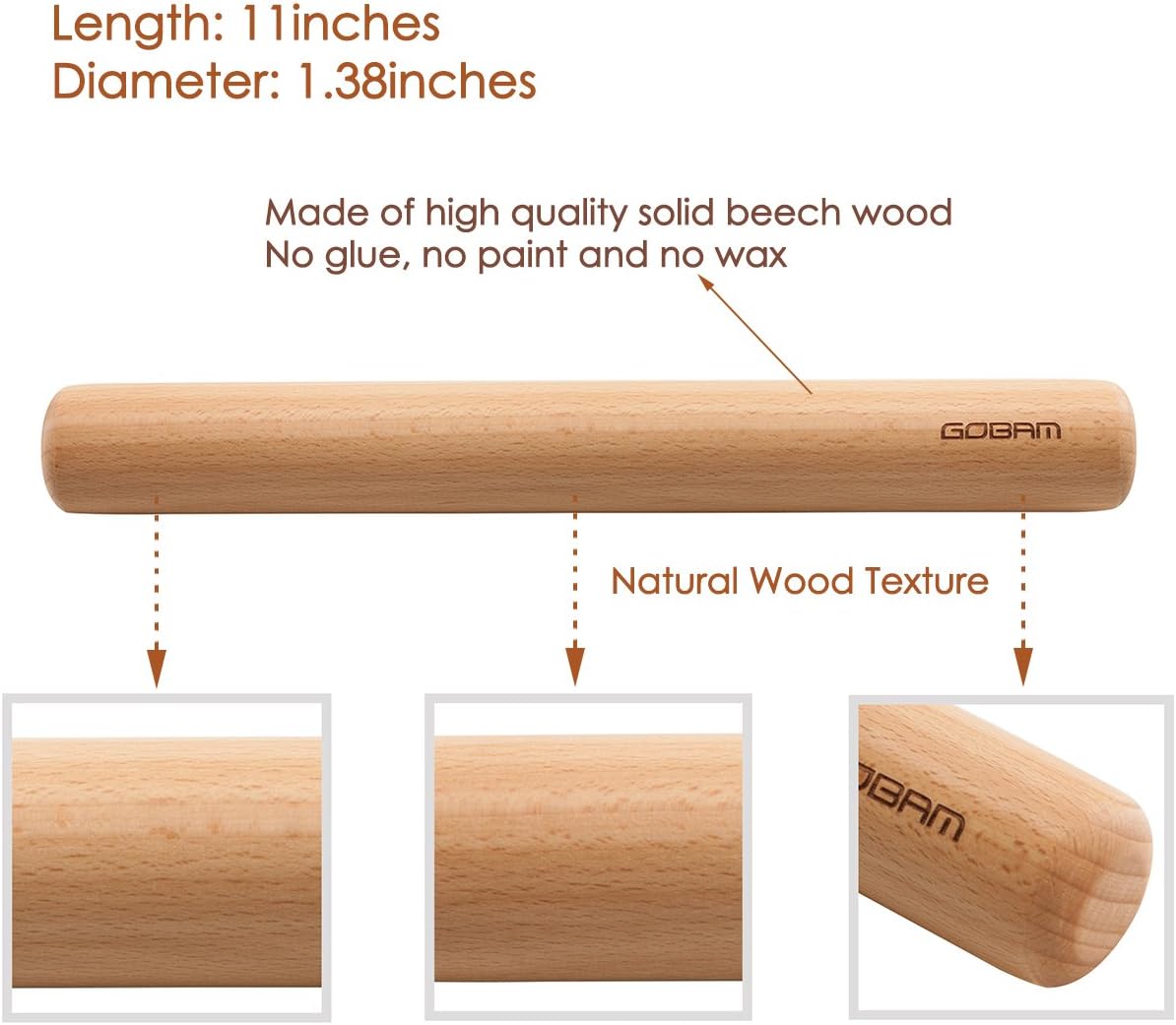 - Multi-purpose Rolling Pin: Start your gourmet journey with the GOBAM wooden rolling pin that helps you roll chapati, pasta, pie crusts, tarts, cookie, and pizza dough at home. With a smooth surface, the dowel can also be used as a fondant roller