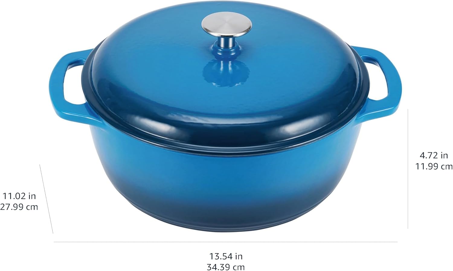 Amazon Basics Cast Iron Dutch Oven Pot with Lid, Enameled, Round, Dual Handles, Heavy-Duty, Medium, 6-Quart, Blue