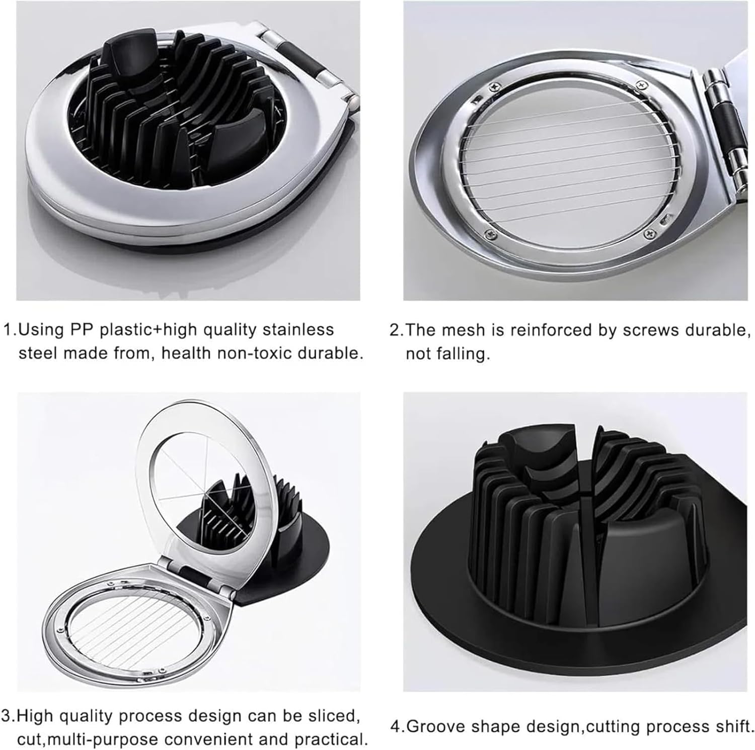 - Multi-purpose Design: Multifunction egg cutter not only works great on boiled eggs, but also can quickly and easily slice Kiwi, strawberry, cheese, butter, mushroom etc. It can save your time and energy and make different shapes for garnish or egg-based appetizers