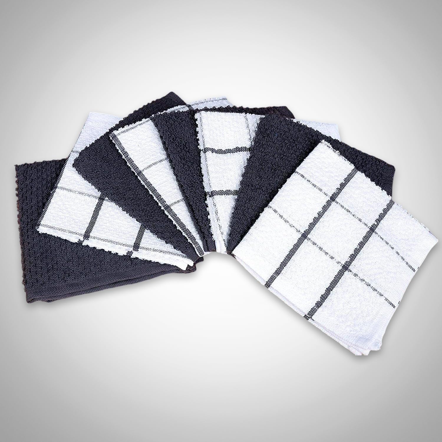 AMOUR INFINI Cotton Kitchen Dish Cloths Set of 8 – Highly Absorbent, Super Soft Premium Terry Cleaning Cloth (12"x12" Inch) Premium Dishcloths for Washing Dishes (Dark Grey)