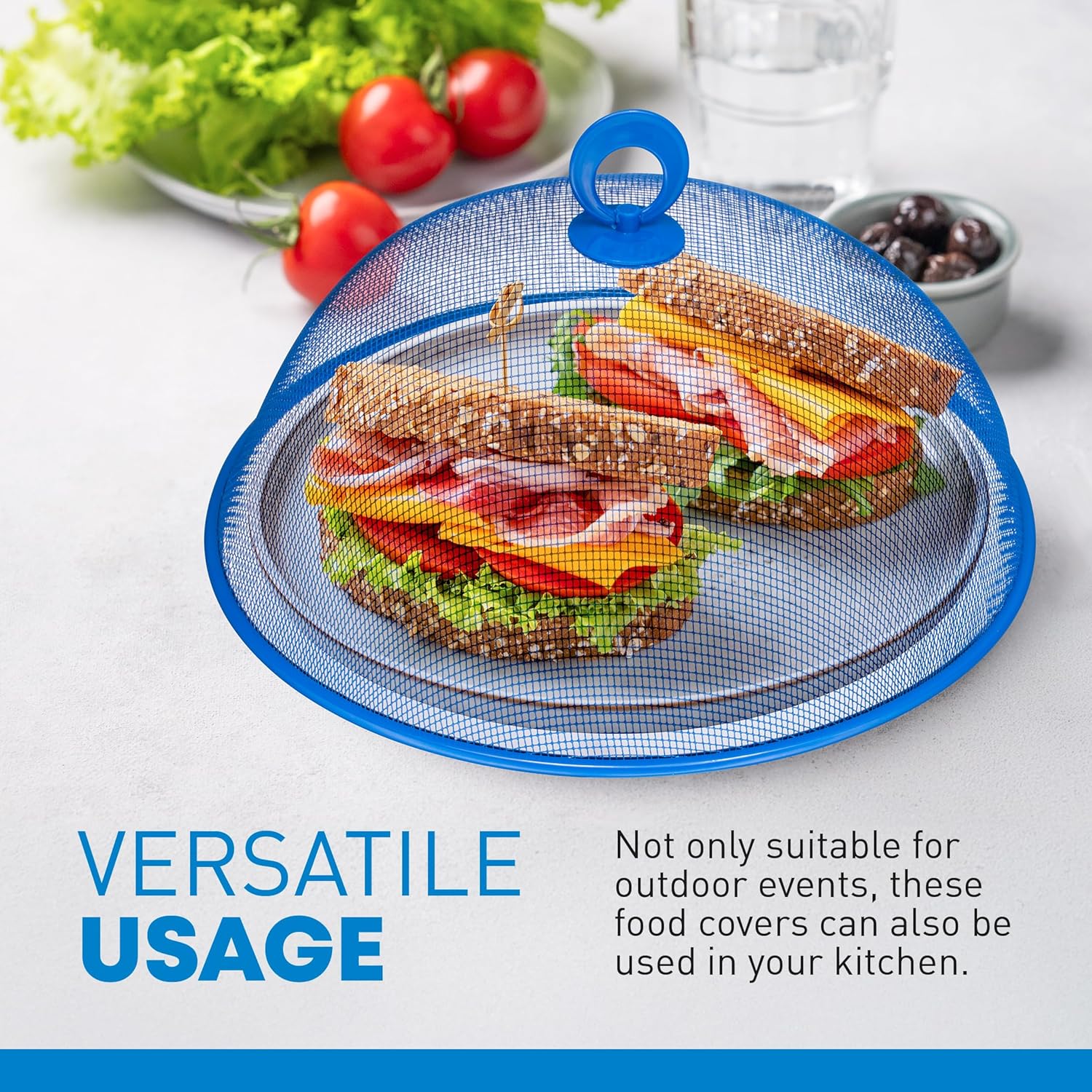 - Multiple use: These mesh covers not only works perfect for outdoor party, camping, picnic, home, or kitchen. Covers for food outdoors and indoors bowls, plates, utensils, opened drinks, snacks and fruits. Also ideal to be used as a cover on fresh planted herbs and or other small plants on raised garden beds protecting seedlings from slugs, bunnies, flies and much more!
