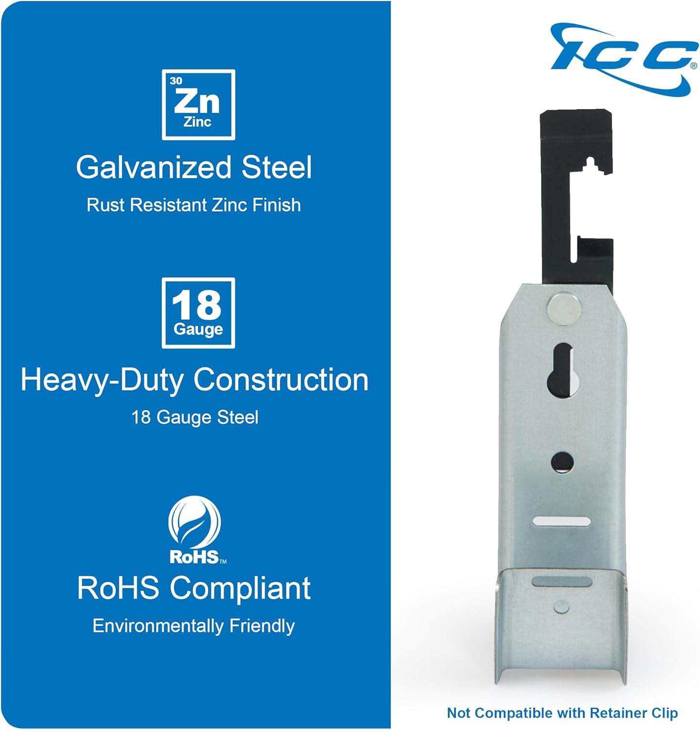 - DURABLE GALVANIZED STEEL + RUST-RESISTANT ZINC FINISH - ICC cable hooks are crafted from high-quality galvanized steel, ensuring strength, durability for all your cabling needs. Each of the large J-Hooks for cables is also equipped with a protective, rust-resistant zinc finish to extend the life and maintain the integrity of your cable installations.