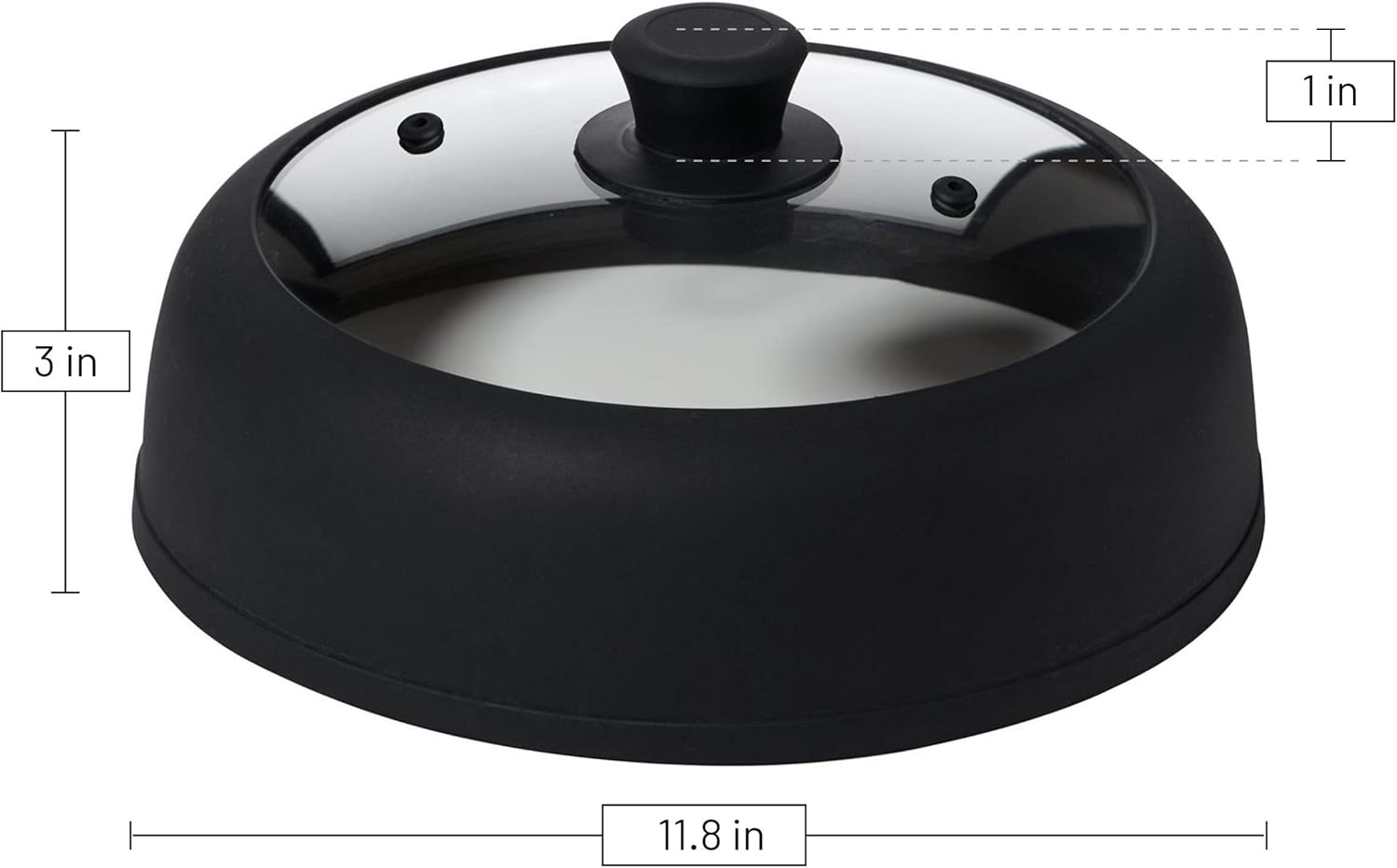 Bezrat Vented Glass Microwave Plate Cover | Large 12-inch Splatter Guard Lid | Firm Grip Silicone handle | 100% Food Grade | Dishwasher Safe (Black)