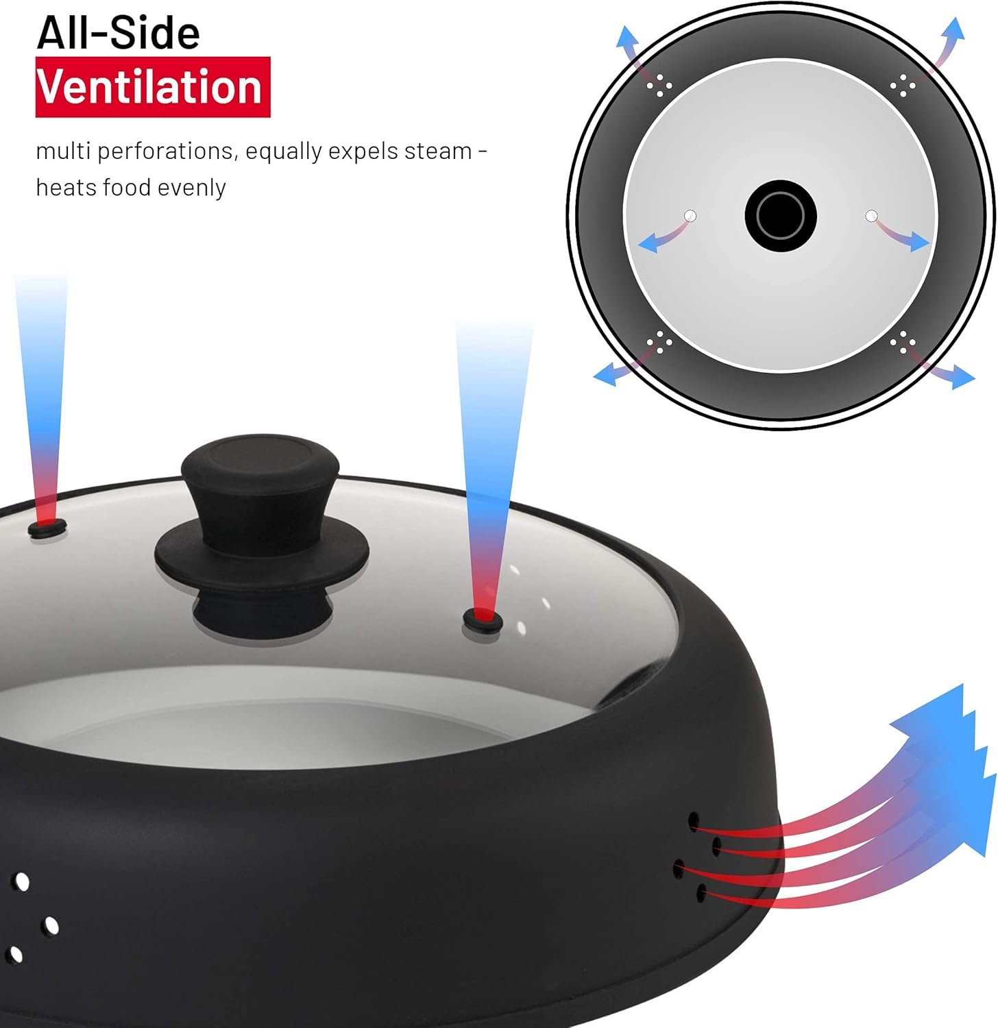 - ✅A 2-HOLE VENTING SYSTEM - allows steam to expel, while keeping the spill and splatter mess within. Prevents the food from drying out by keeping it fresh and moist. Is oven-safe up to 450 .