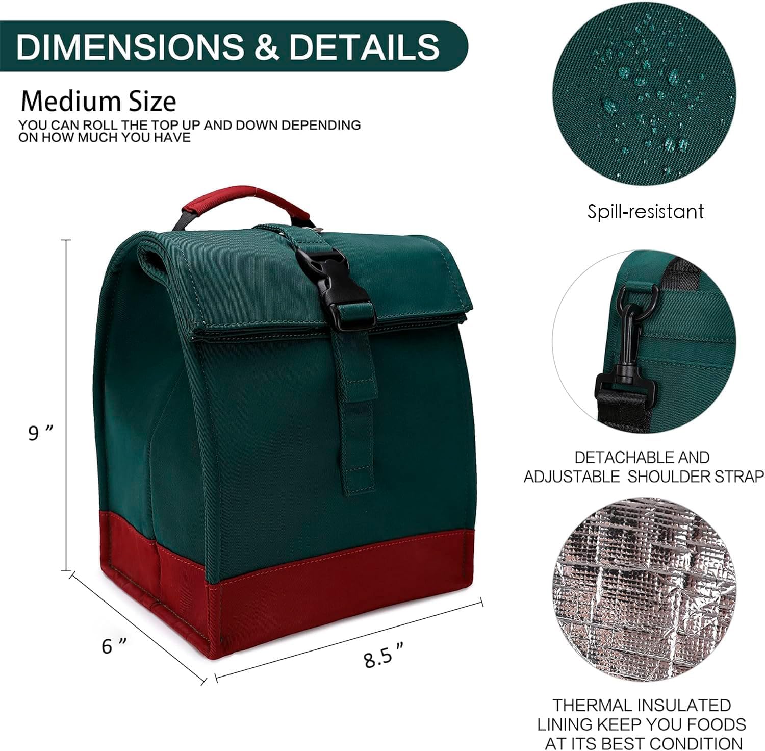 - Ultimate performance and durable - excellent & ultimate performance comes from our temperature controlled design. Our roll-up tops, triple-layer-insulation perfectly seal in cool & hot air, keeping your food fresh for several hours. Combined with high quality nylon fabric, this women lunch bag’s exterior can stand up to any humid environment, and also makes it easy to wipe clean
