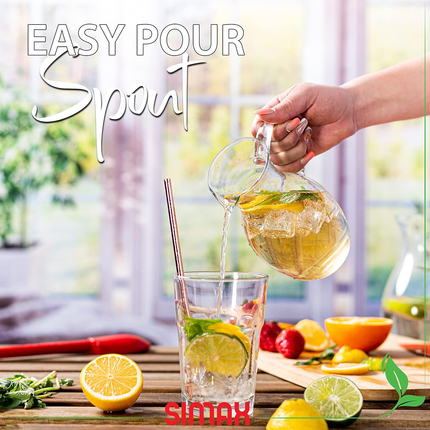 - EASY POUR SPOUT AND LARGE COMFORTABLE HANDLE make using this mini glass pitcher a breeze. Just pour and enjoy, without worrying about achy hands or cleaning up a drippy mess. Plus, Borosilicate is lighter than traditional glass, making it easier to handle even when full.