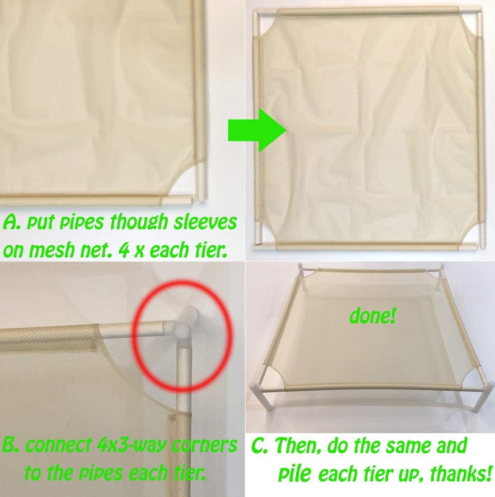- LONGER LEGs to have each tier's distance higher, so BIGGER SPACE each rack for your needs. Use gauge 5/8 inch (16mm) plastic pipes and improved 3-way corners, which do NOT COME OFF when tiers pile up