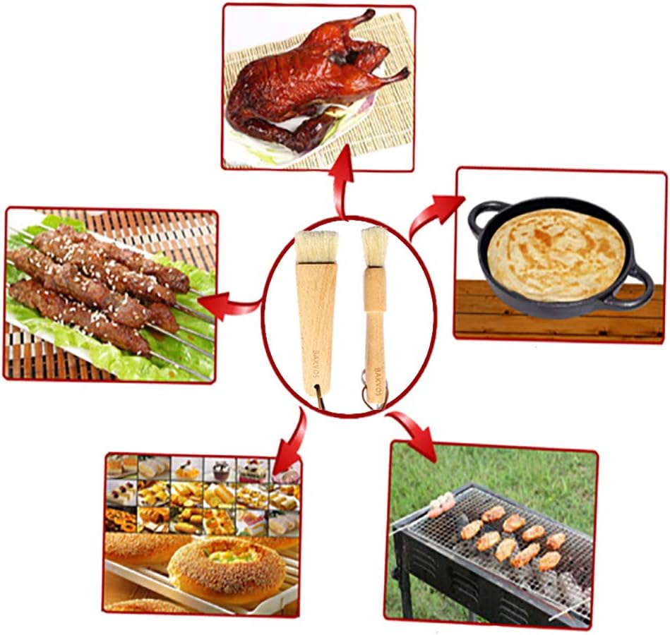 Pastry Brushes With Natural Wood and Bristles,Baking Brushes,Cooking Brushes,Food Brushes,Round and Flat,2 Pack