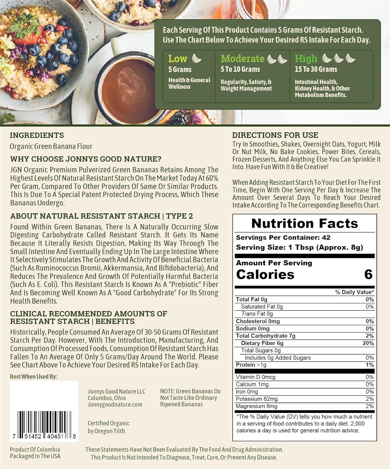 Jonnys Good Nature Organic Ultra High Resistant Starch Premium Green Banana Flour | On Average [10x's] More Prebiotic Fiber Per Gram Than Other Green Banana Flours On The Market | 42 Servings