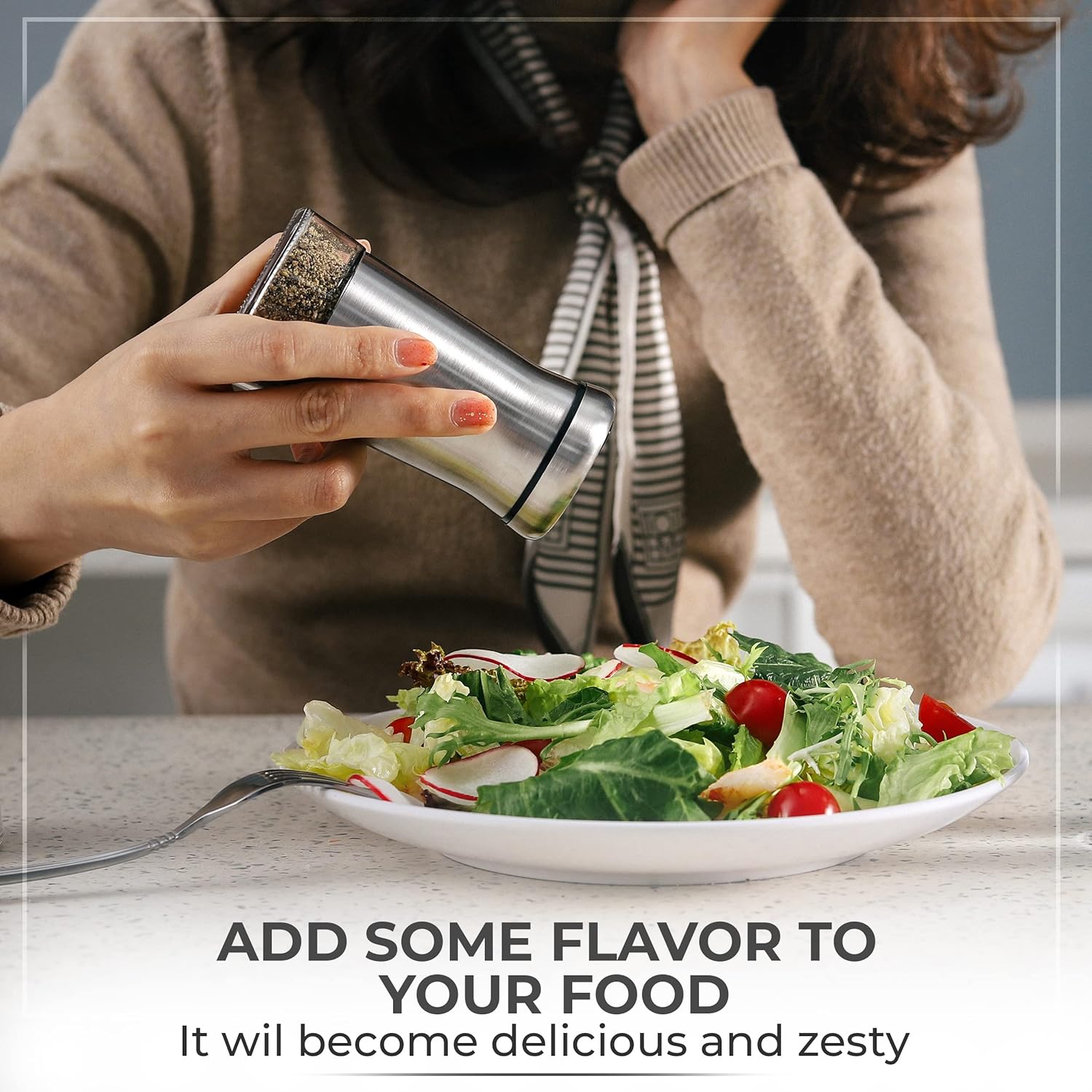 - ✅ Choose your spice – Fill the Shaker with your favorite spices like: Sea, Himalayan, Table or Kosher Salt, Black, White, Four-color Pepper, or any other seasoning you can imagine. Adding your favorite spices will enrich your food on any meal. *Spices not included