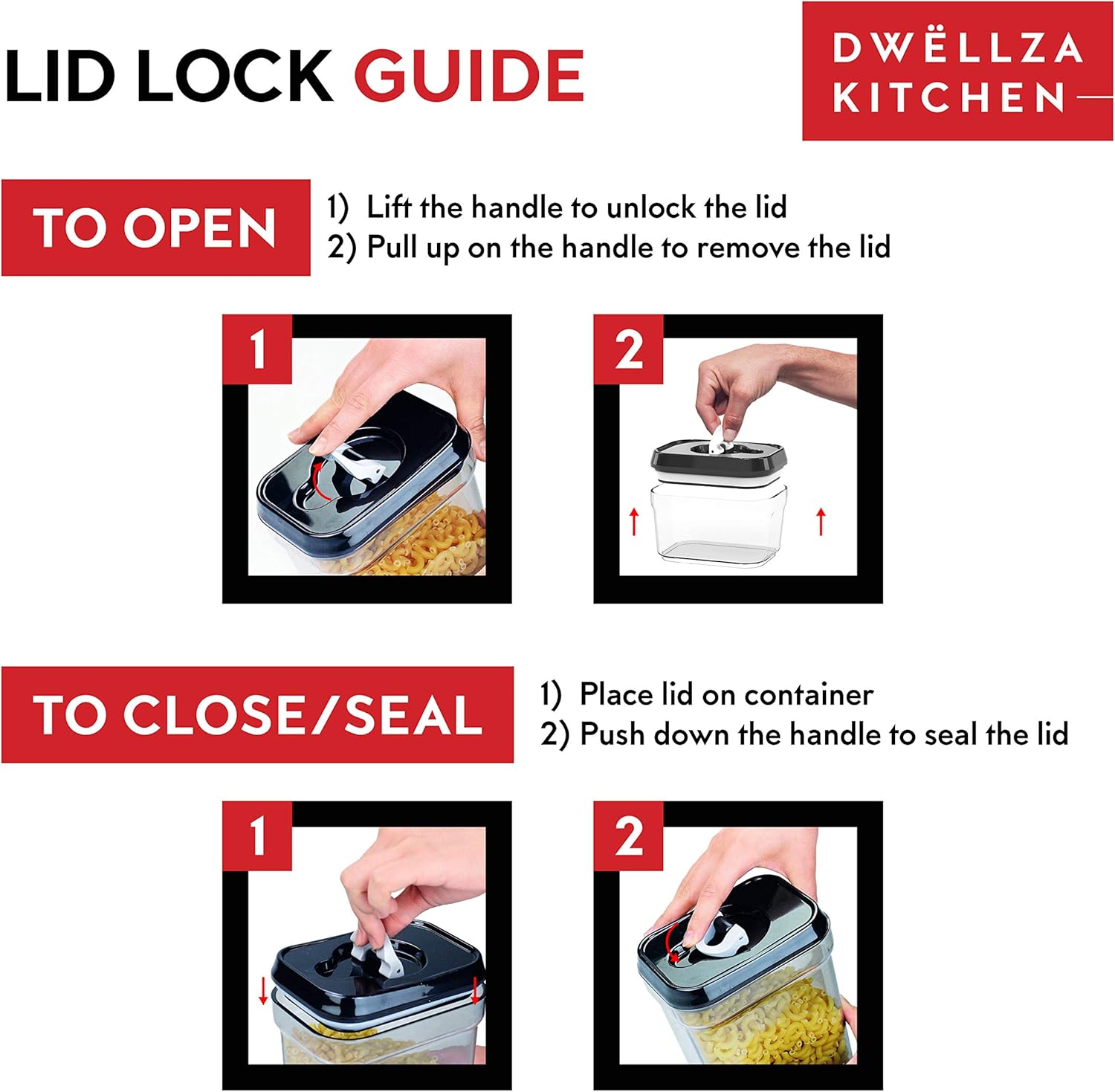 - Enjoy Your Meal With Fresh Food: Keep Your Foods Fresh with Our Very Easy to Use Airtight Lid-Lock Mechanism. No Dealing with Flimsy Pumps. Our Food Storage Containers Create an Airtight Seal by Simply Pushing Down the Ring on The Lid. Lift the Ring and Push Up Whenever You Want to Open the Containers. The Airtight Seal Is So Secure You Can Store Liquids Without Ever Worrying About Leaks!