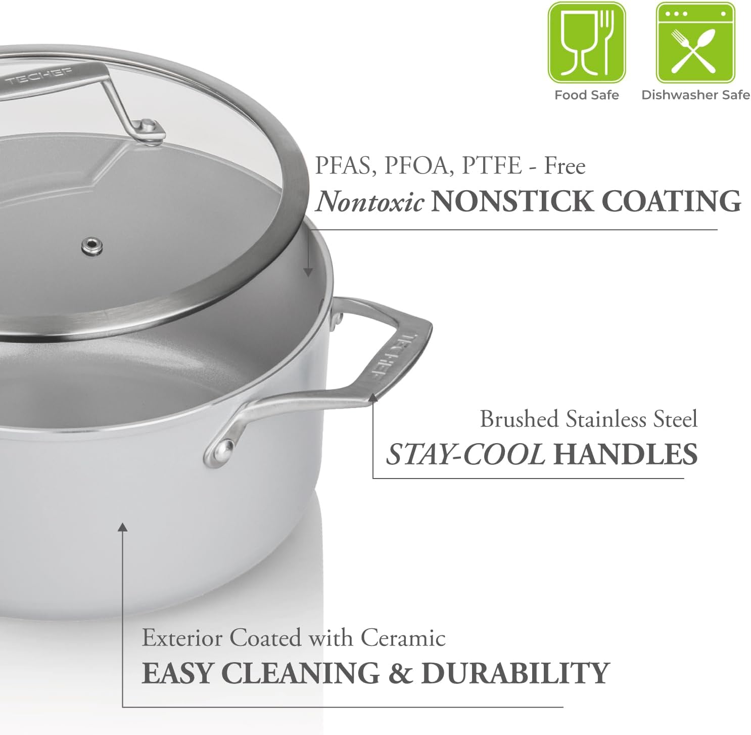 TECHEF - CeraTerra Collection, 5-quart Ceramic Nonstick Soup Pot with Glass Lid (PFAS, PTFE, and PFOA Free), Made in Korea (5-quart)