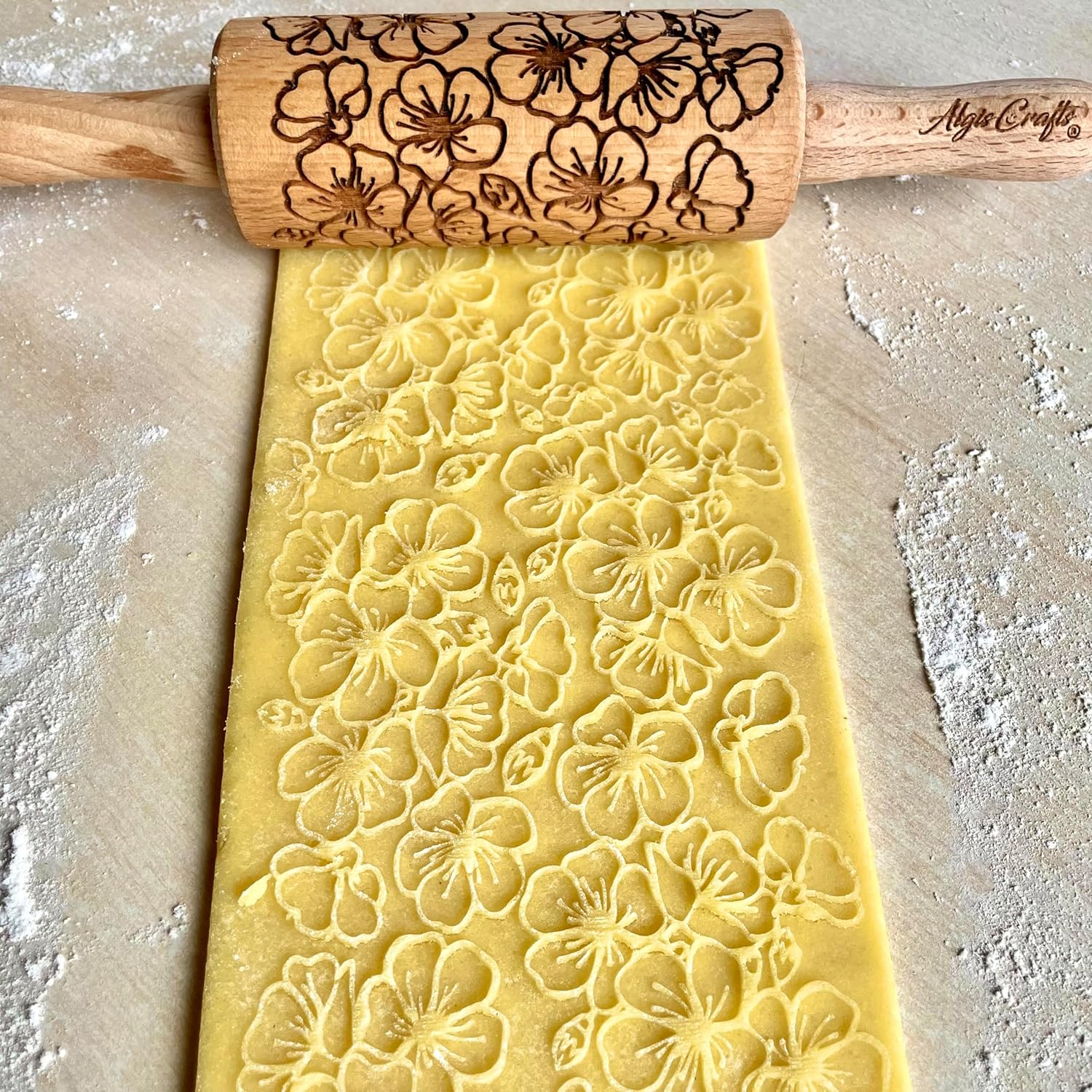 GARDEN BLOSSOMS 3 Small Size Embossed Rolling Pin Set. Wooden Laser Engraved Embossing Dough Roller for Embossed Cookies Gift for Birthday, Easter by Algis Crafts