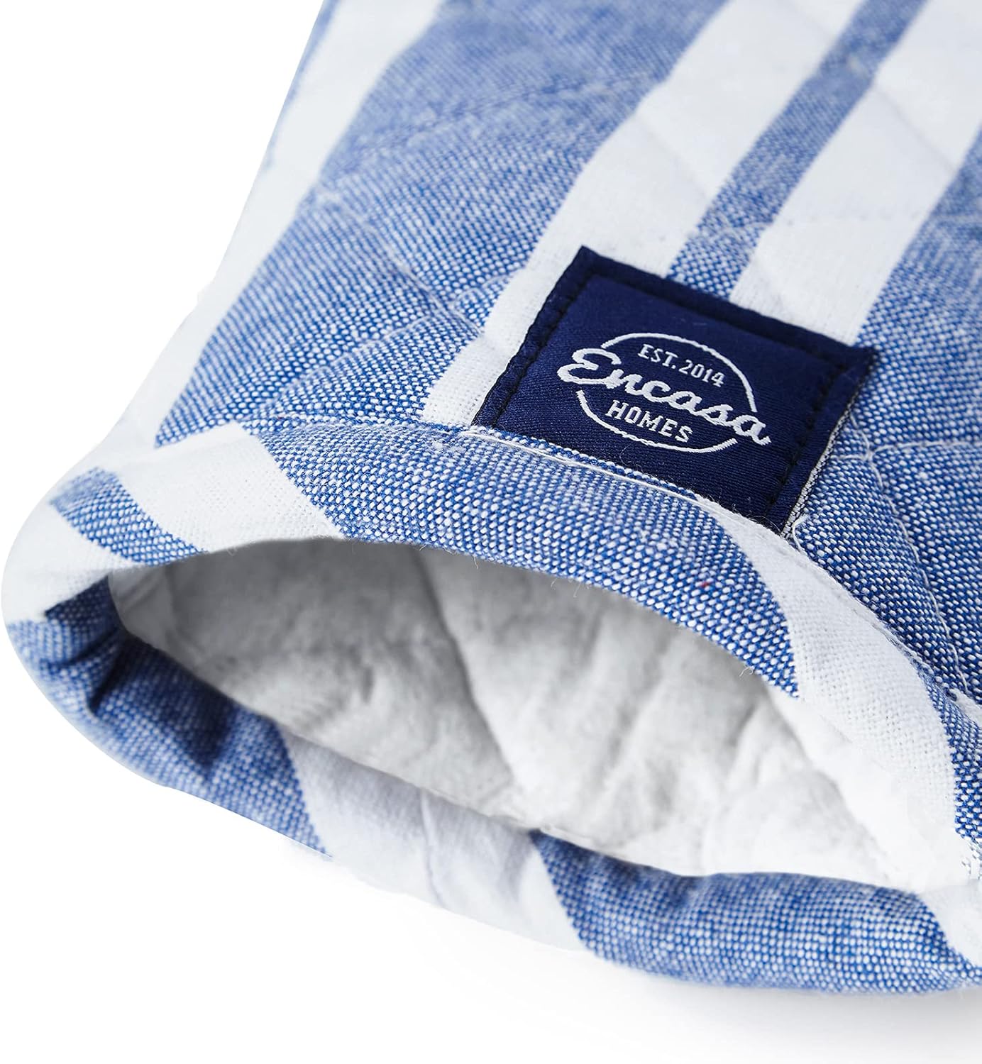 Encasa XO Long 12"x7" Oven Microwave Hand Gloves Mitts (2 pc Set) for Kitchen Cooking & Baking - Heat Resistant, Thick & Safe, Protection of Hands from Hot Utensils - Franca Blue Stripes