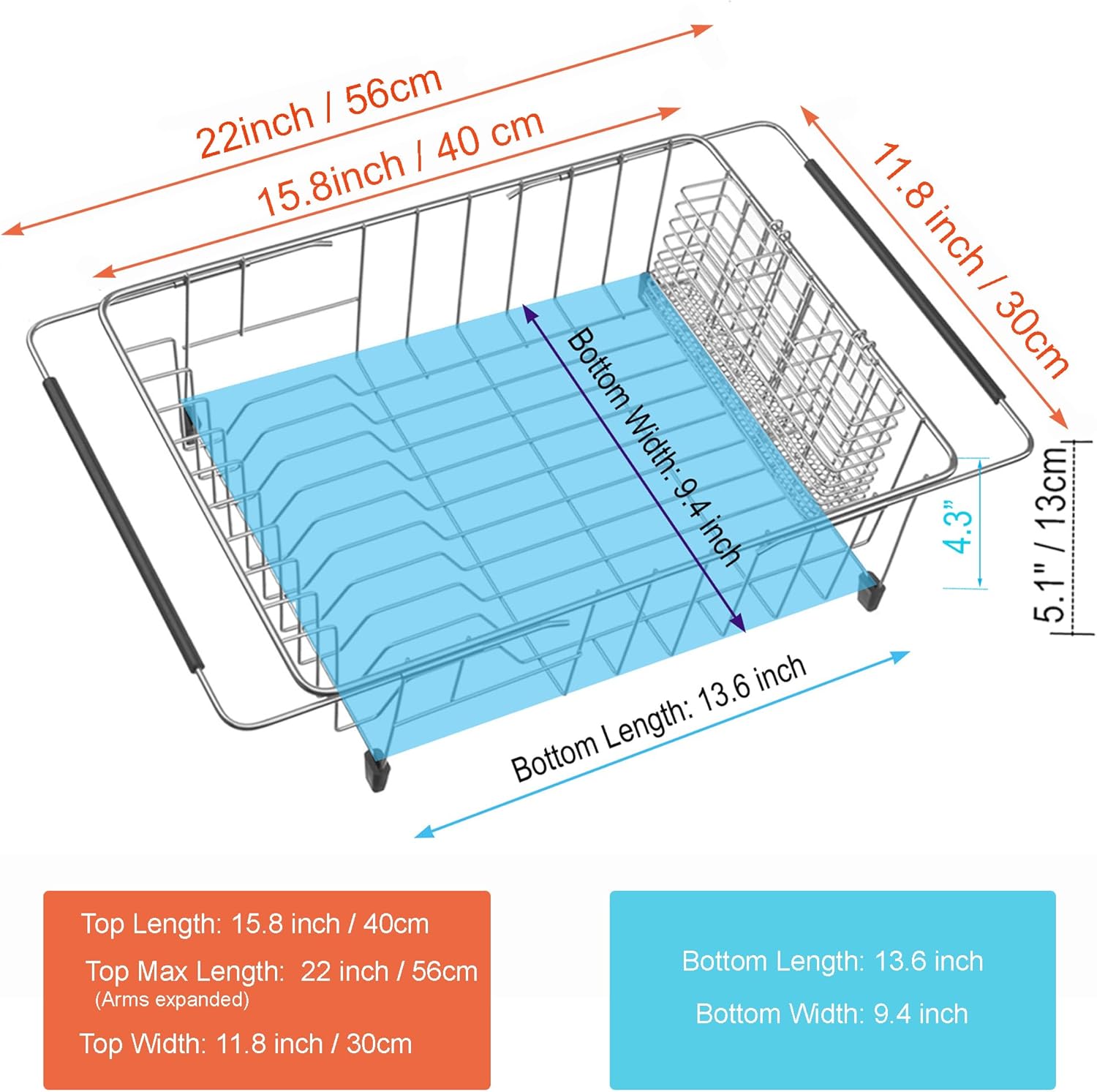 - ✔ EXTENDABLE & SUITABLE for Different Size Sink: The unit (collapsed) measures 15.8"(40cm) L x 11.8" (30cm) W x 5.1"(13cm) H, expands from 15.8" to 22.2" length to make it handy to place over a larger sink, fit your sink which is 16 to 22 inches length.