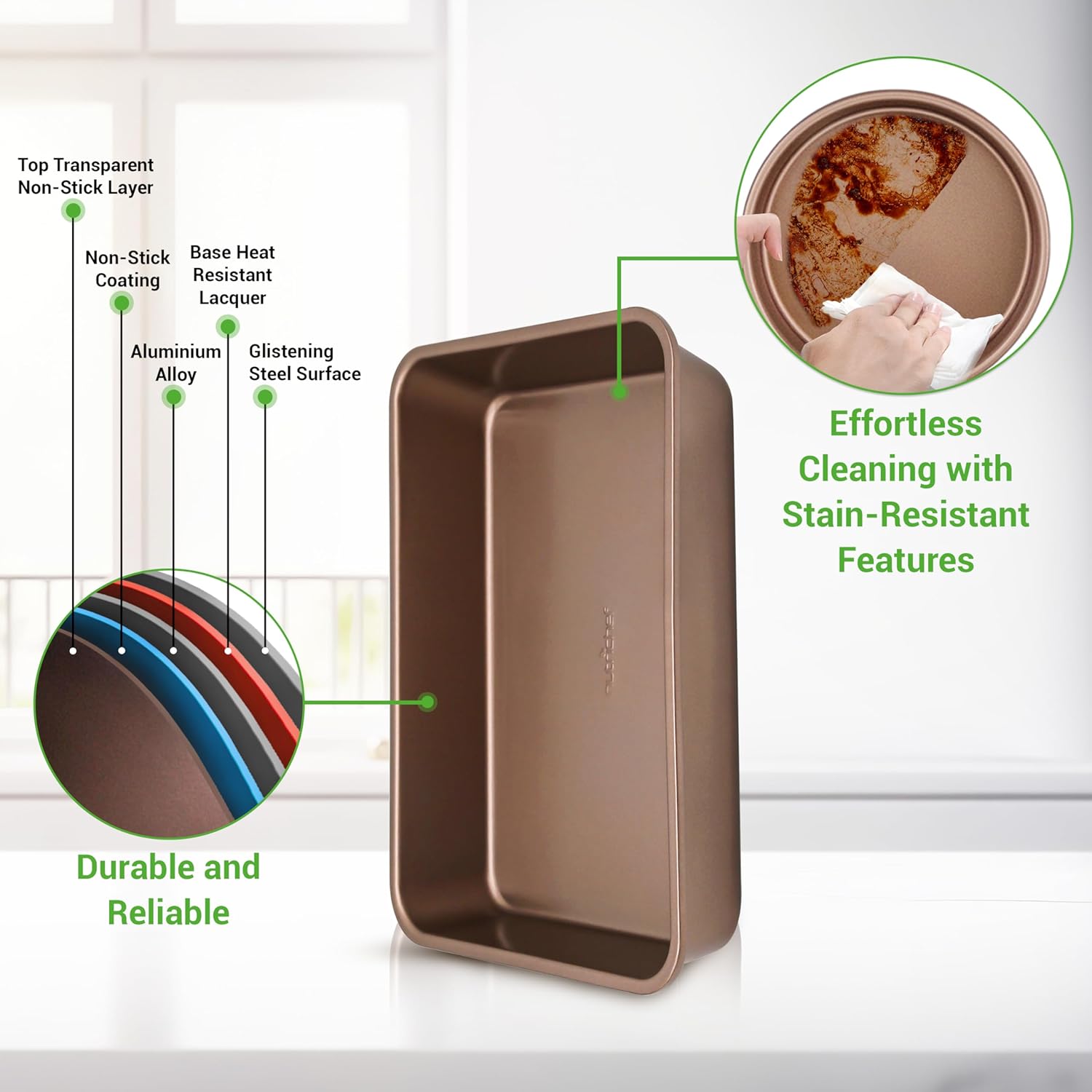 - NONSTICK PREMIUM METALLIC COATING: Thoughtfully designed inside and out, the carbon-steel bakeware set features a nonstick coating, which reduces the need for excess butter or oil in the pan and helps distribute heat evenly across the pan