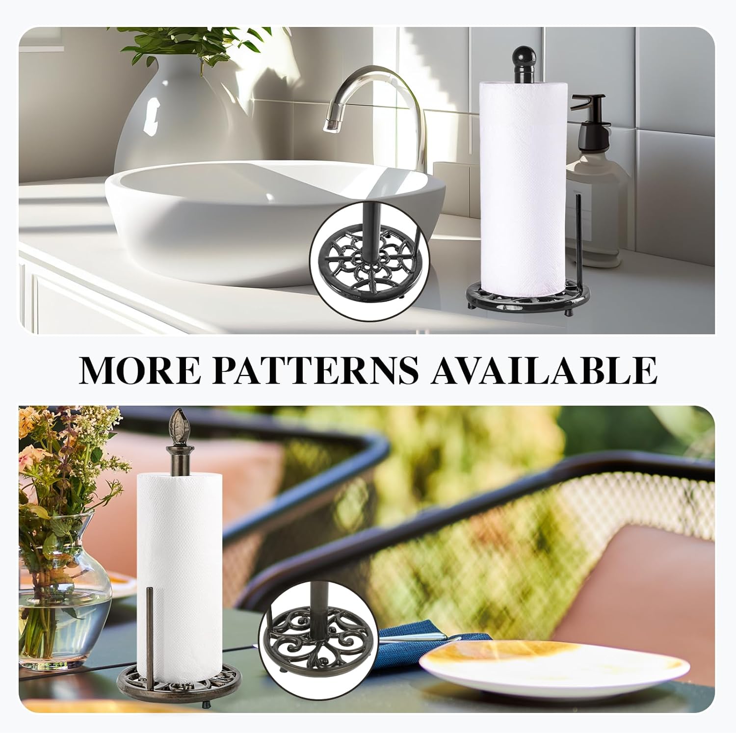 - Vintage Style & Traditional Handicraft: Vintage heavy towel paper holder with a non-slip mat which more stable and prevent kitchen table scratch, slid. Using handcrafted traditional cast iron techniques having a unique artistic style