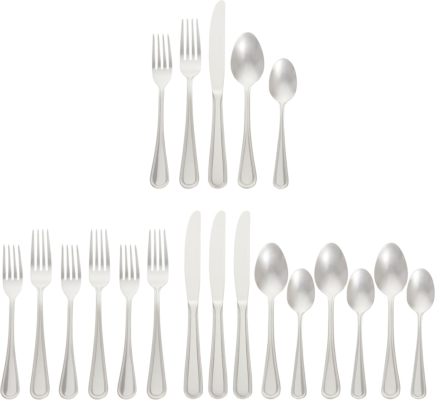 Amazon Basics Silverware Set, Stainless Steel Flatware, Dishwasher Safe, Service for 4, 20-Piece Forks and Spoons, Crown Edge
