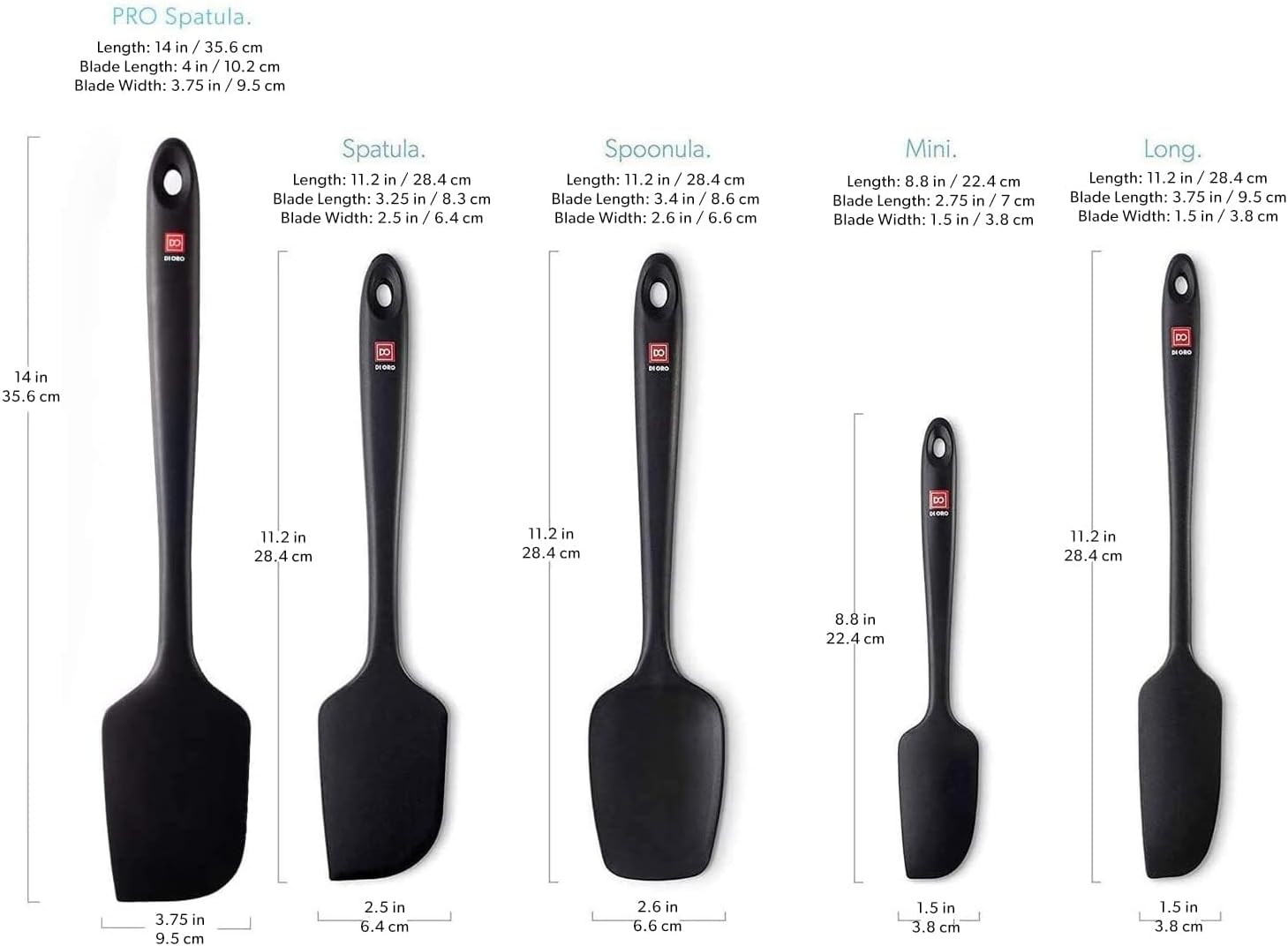 - IGNITE YOUR CULINARY VISION – Every piece in the DI ORO 5-Piece Seamless Silicone Spatula Set is a canvas for your culinary creativity. Crafted precisely from food-grade, BPA-free, and LFGB Certified Silicone, these thoughtfully designed utensils are your tools for innovation and engineered to defy heat up to 600°F without a hint of melting.