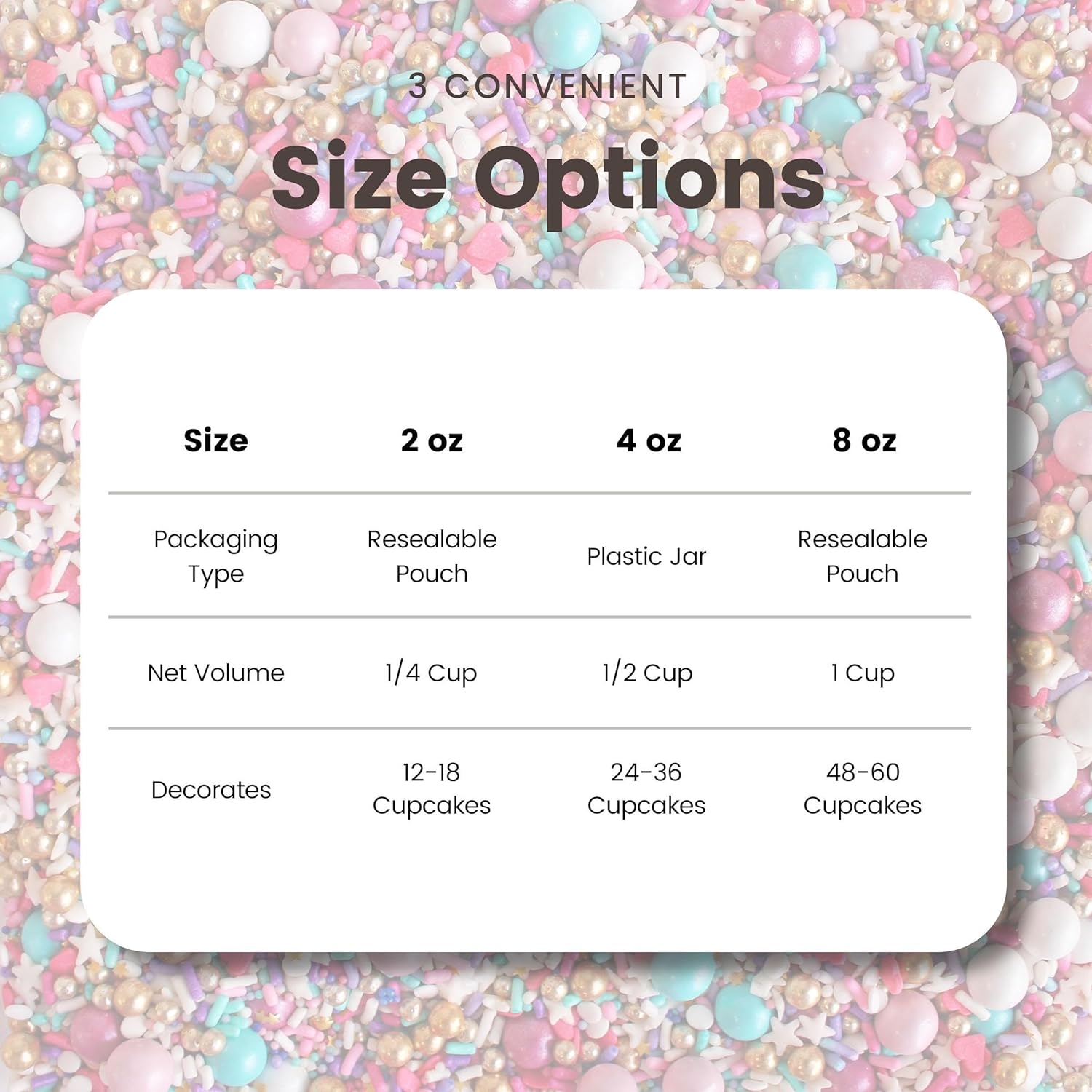 - Multiple Sizes Available: Choose from 2oz (decorates 18-24 cupcakes) and 4oz (36-48 cupcakes) depending on your decorating needs