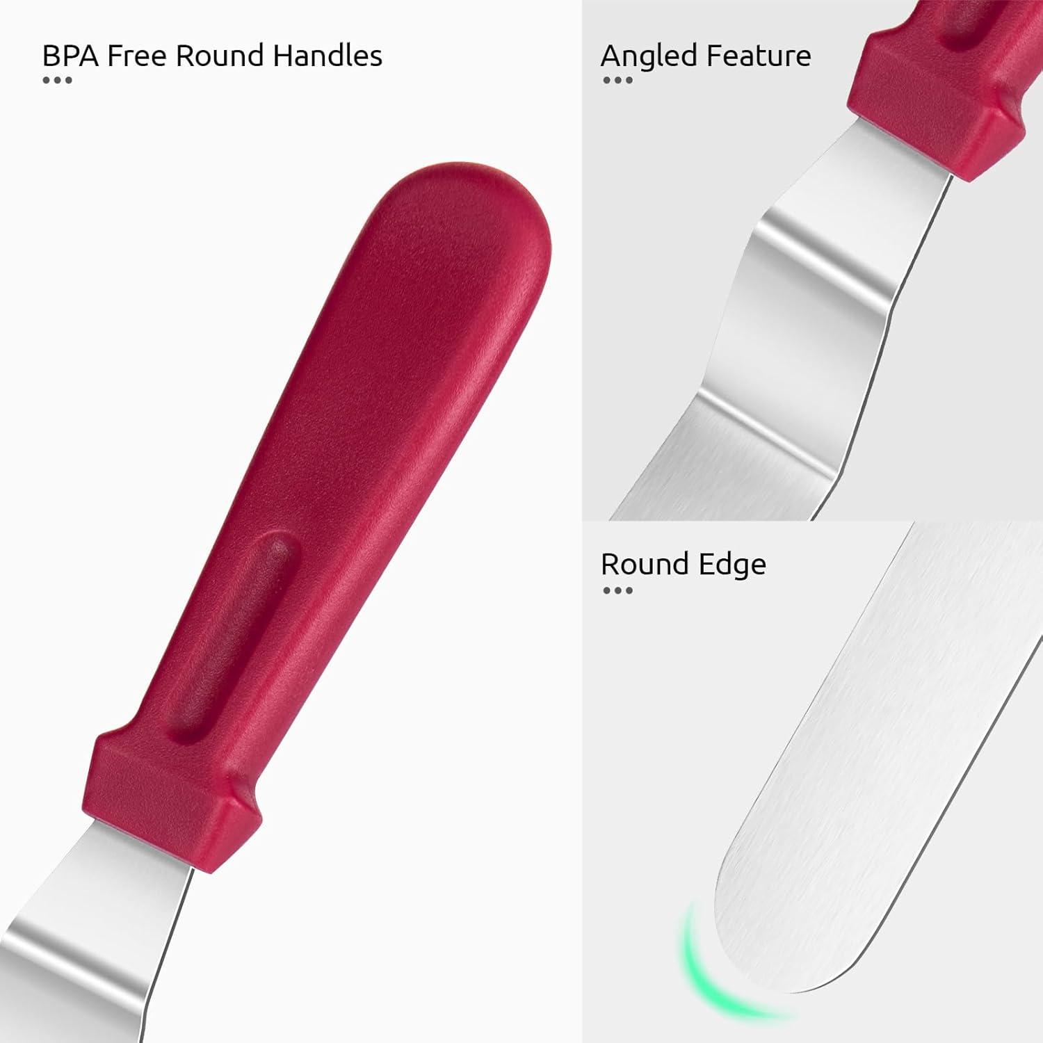 Icing Spatula, U-Taste Offset Spatula Set with 6", 8", 10" Blade, 18/0 Stainless Steel with PP Plastic Handle Angled Cake Decorating Frosting Spatula Set of 3 (Red)