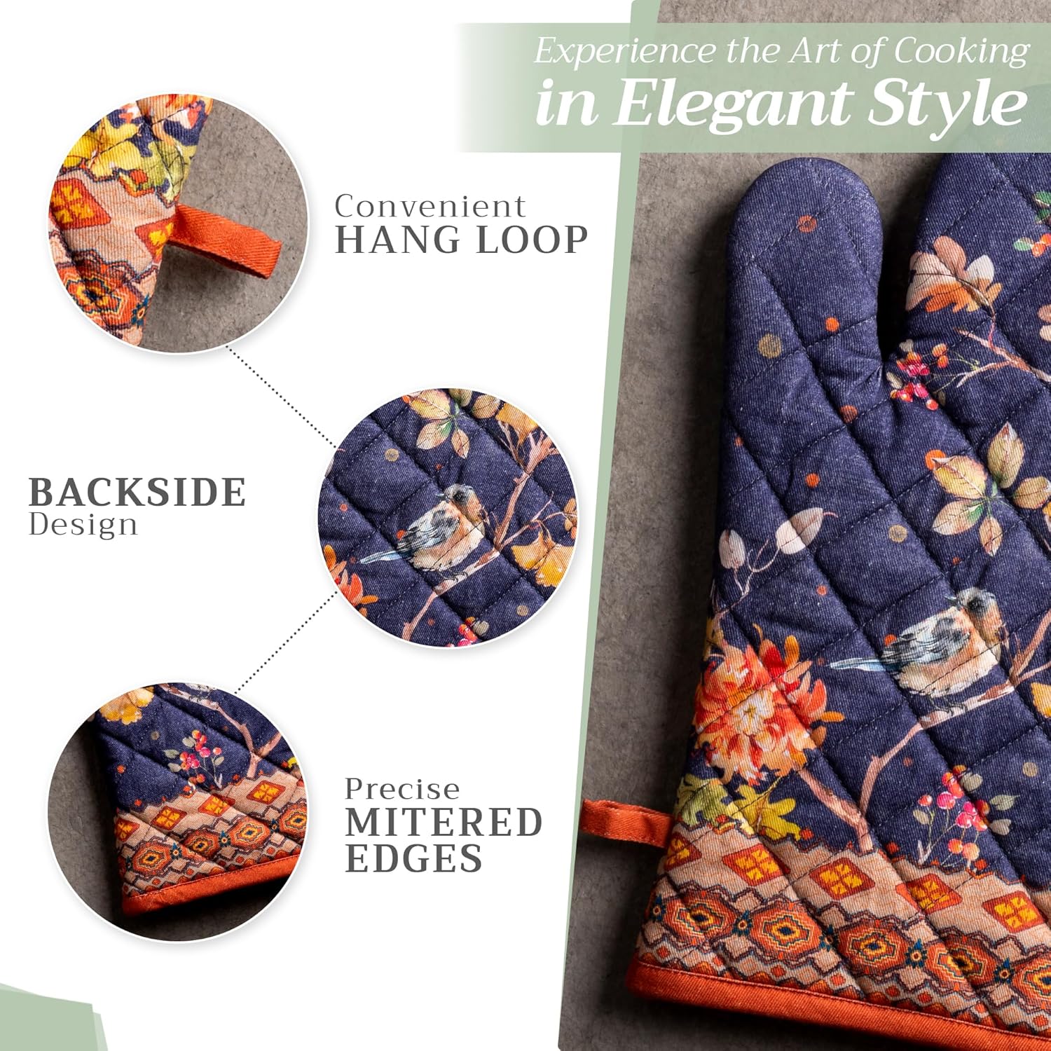 - 100% Quilted cotton: Crafted from thick, durable quilted cotton, this heat resistant oven mitt provides a soft feel, safe handling, and lasting performance. A must-have kitchen accessory for everyday cooking, roasting, or baking tasks