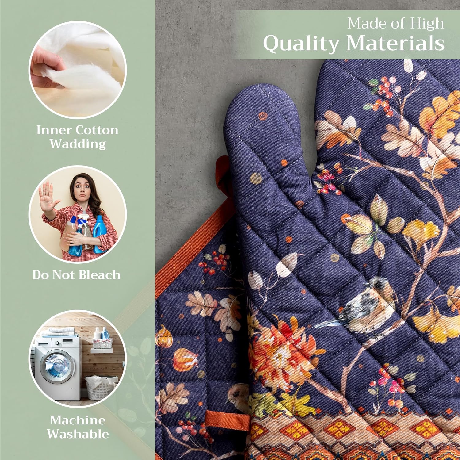- Premium Quality: Crafted from quilted 100% cotton, this heat resistant oven mitt and pot holder set offers comfort, flexibility, and protection from hot cookware. Ideal cotton oven mitts for daily kitchen use and cooking safety
