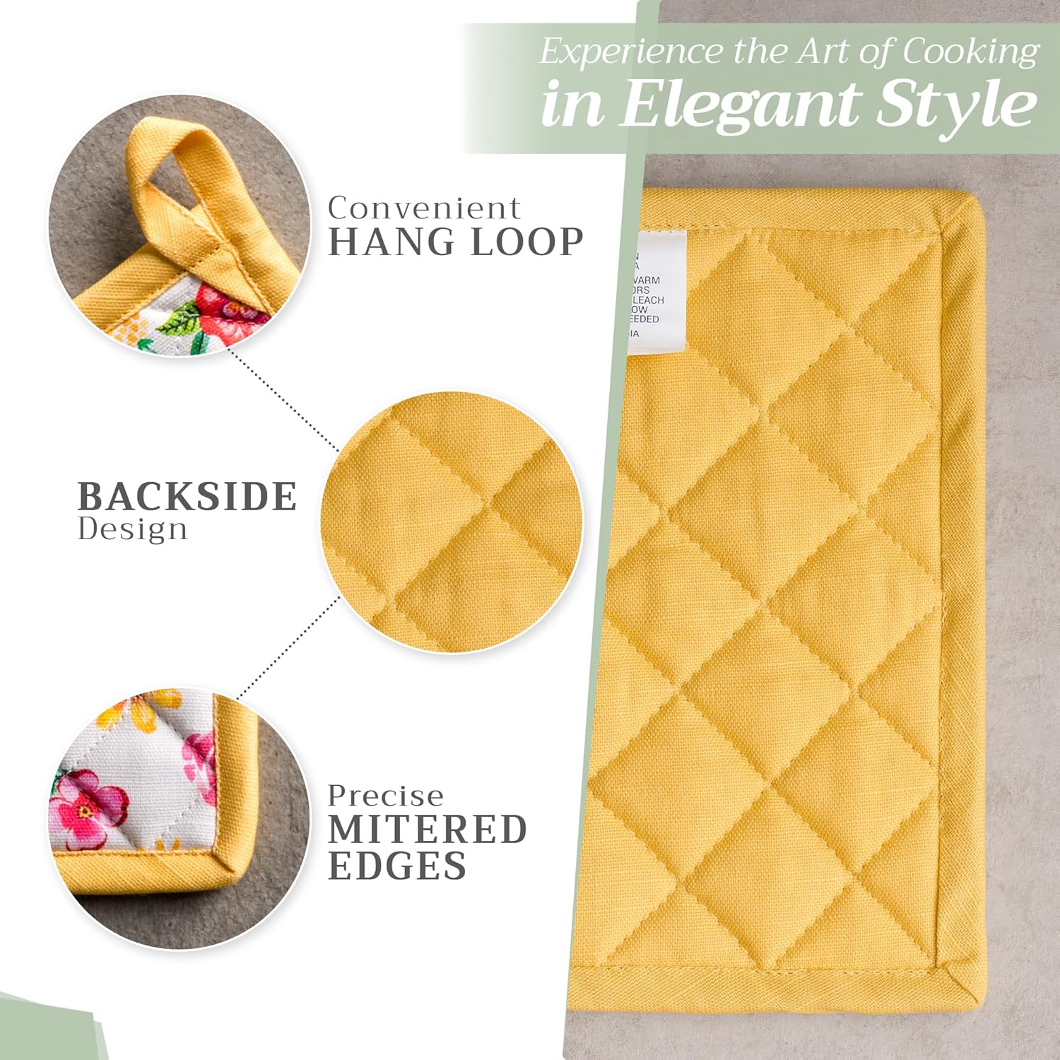 Maison d' Hermine Pot Holders 100% Cotton Heat Resistant Potholders 8" x 8" Hot Pads with Loop BBQ, Cooking, Grilling, Kitchen, Handling Hot Pans Spring/Summer (Pack of 1, Happy Florals - Sweety)