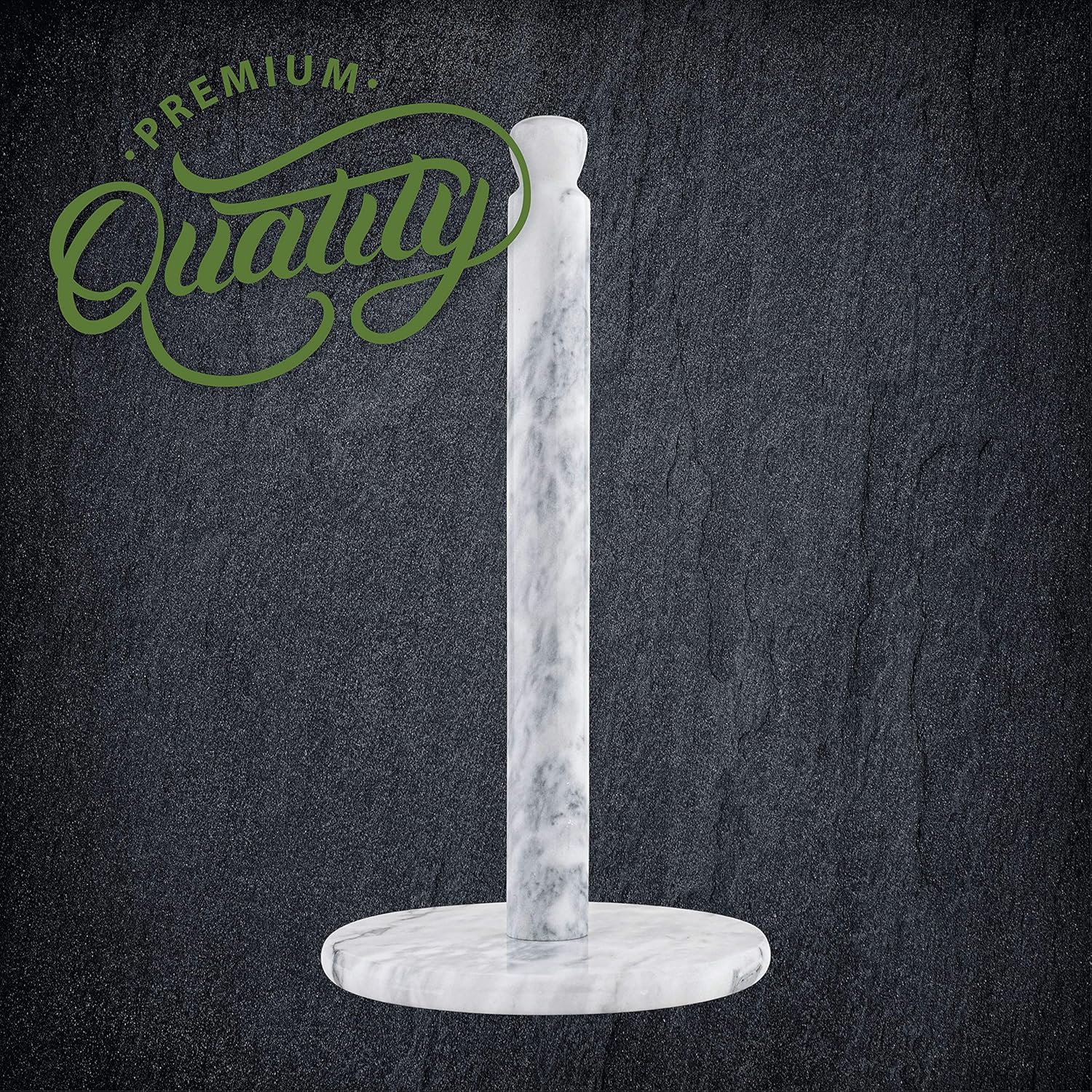 - PAPER TOWEL HOLDER- This paper towel holder stand has been designed with the primary use of holding paper towel rolls for easy usage. The marble stone has been designed so that most rolls can easily fit into the holder and the rolling and tearing of towels is an extremely smooth process.